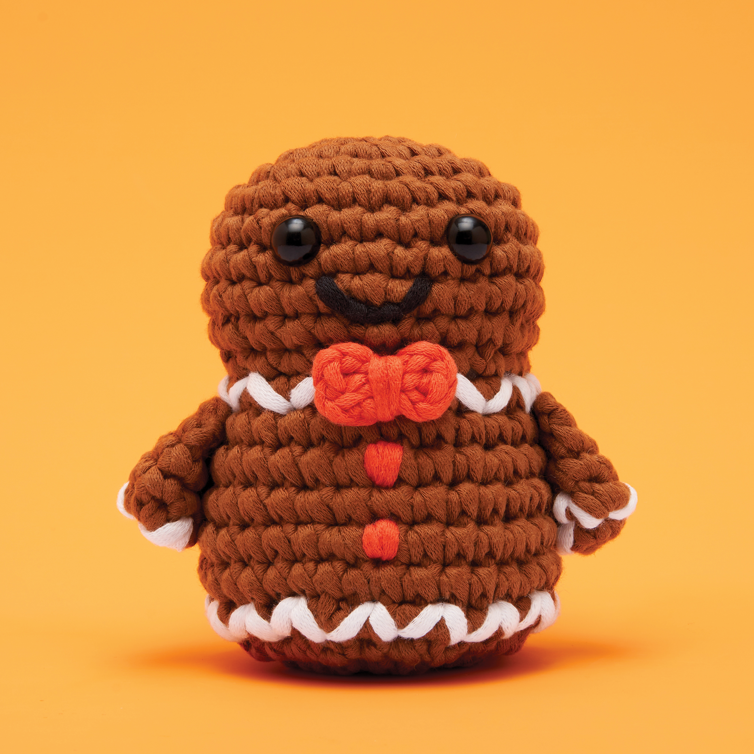 The Woobles Beginner Crochet Amigurumi Kit - Ted the Gingerbread Man, finished example