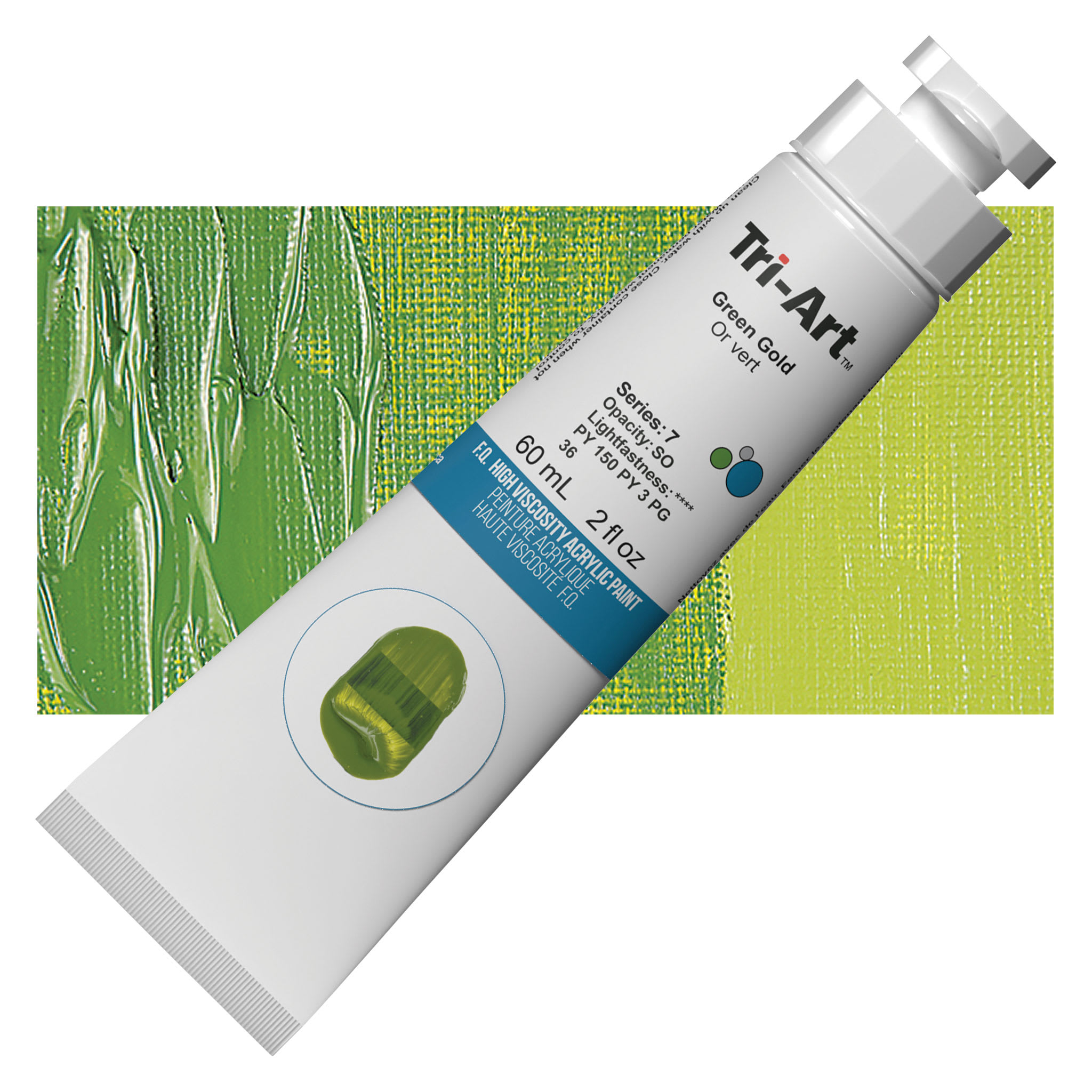 Phthalo Green is a transparent, cool, bright, high intensity color used in oil and acrylics. It comes from a Phthalocyanine Blue pigment where most of the hydrogen atoms have been replaced with chlorine, forming highly stable molecules. Pigment PG36 differs from PG7 in that a portion of the chlorine atoms are replaced with bromine atoms, which are reactively similar, but cause a yellow shift that is especially noticeable in mixtures. Phthalo Green has similar pigment properties and permanence to Phthalo Blue. It is slow drying and an excellent base color for mixing a range of bright greens. Phthalo Green is considered a very good alternative to Viridian because it is intense and mixes well and can be used to emphasize mineral colors in various tints. However, its tinting strength is very high, so it can overpower other colors. This pigment most closely resembles the discontinued and toxic Verdigris.