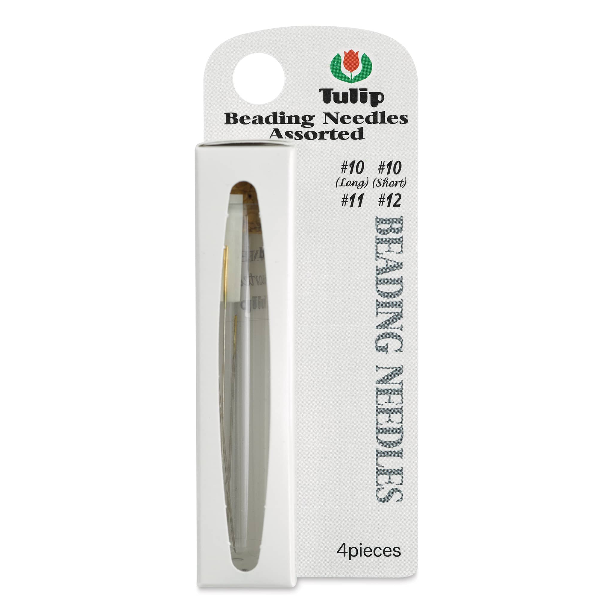 These needles are ideal for beading and embroidery and feature slightly rounded tips that won't split thread. Includes one needle each in the sizes #10 long, #10 short and sharp, #11, and #12.