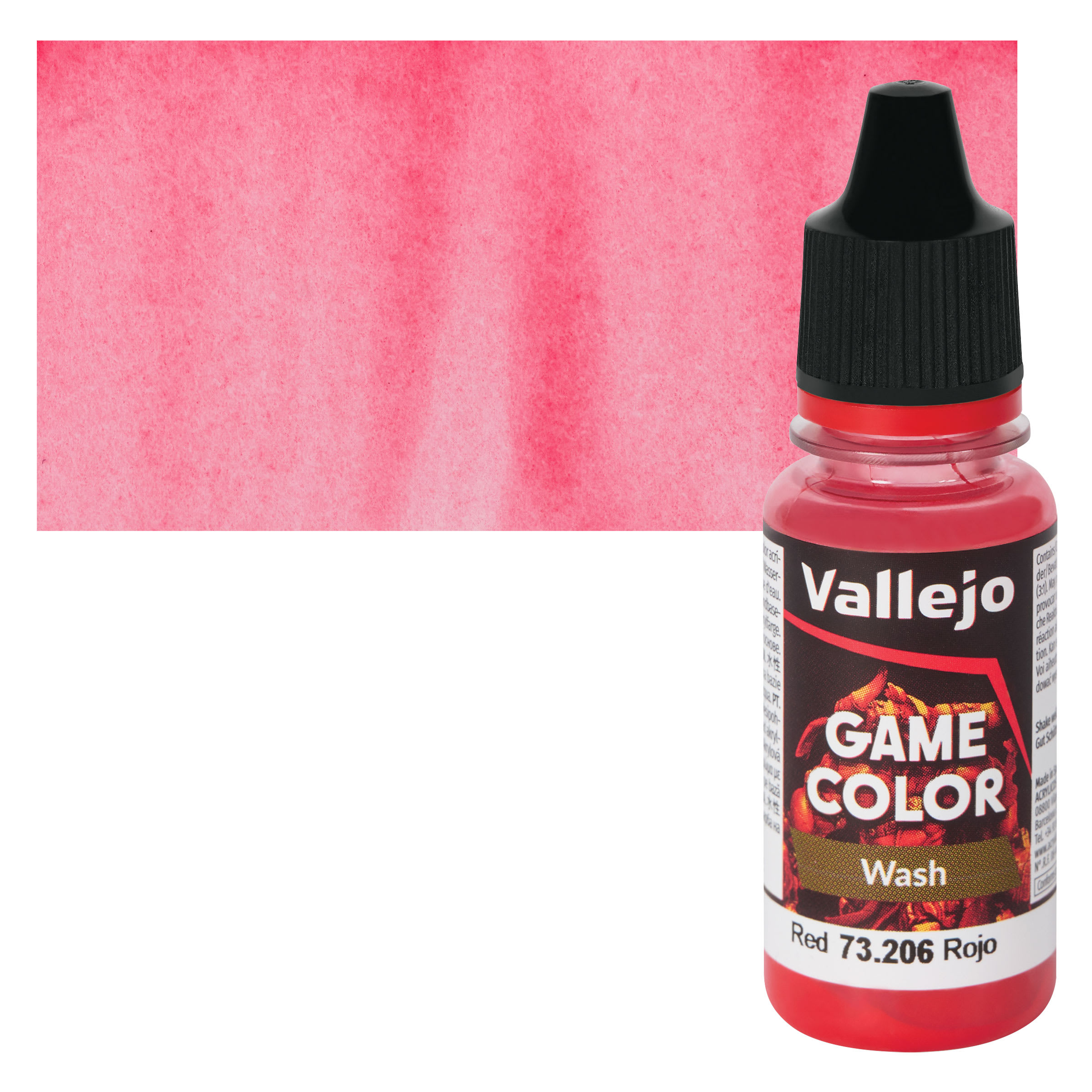 Vallejo Game Color Fluid Acrylic Wash - Red, 18 ml Bottle and Swatch
