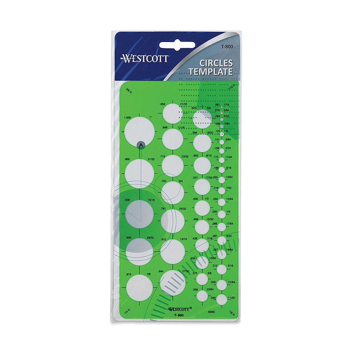 Circles from 1/16" to 1" diameters, plus 4 different corner radii. Outer dimensions are 4" × 8".