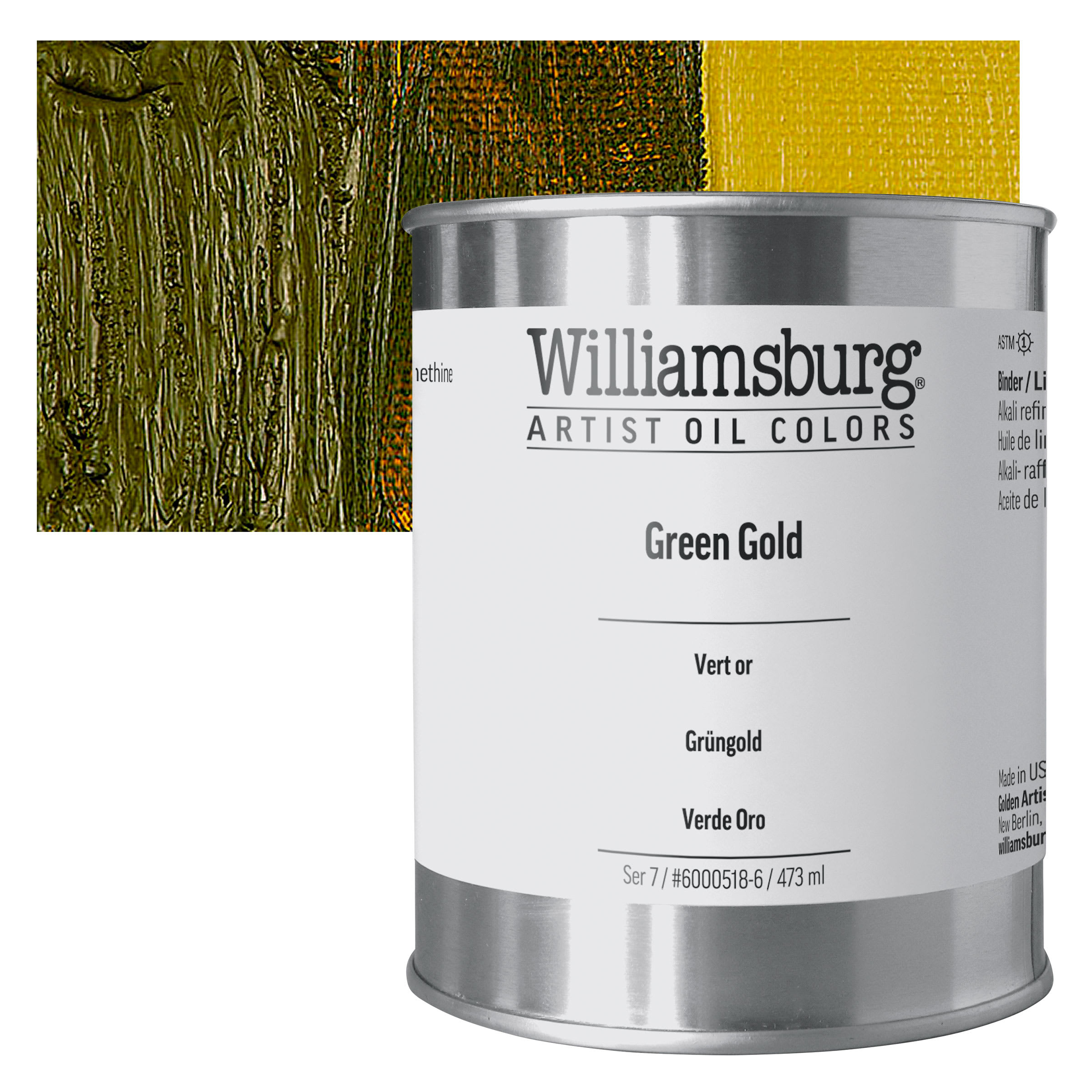Williamsburg Handmade Oil Paint - Green Gold, 16 oz can and swatch