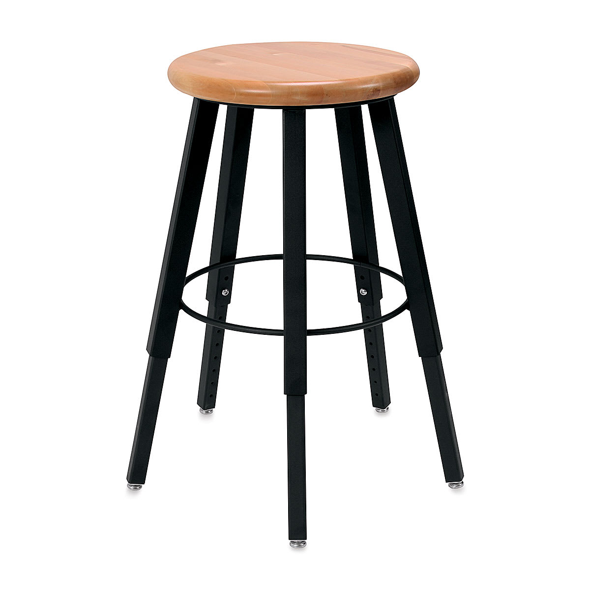WB Mfg Solid Welded Stool - Adjustable 22" to 32", 5 Legs, Hardwood