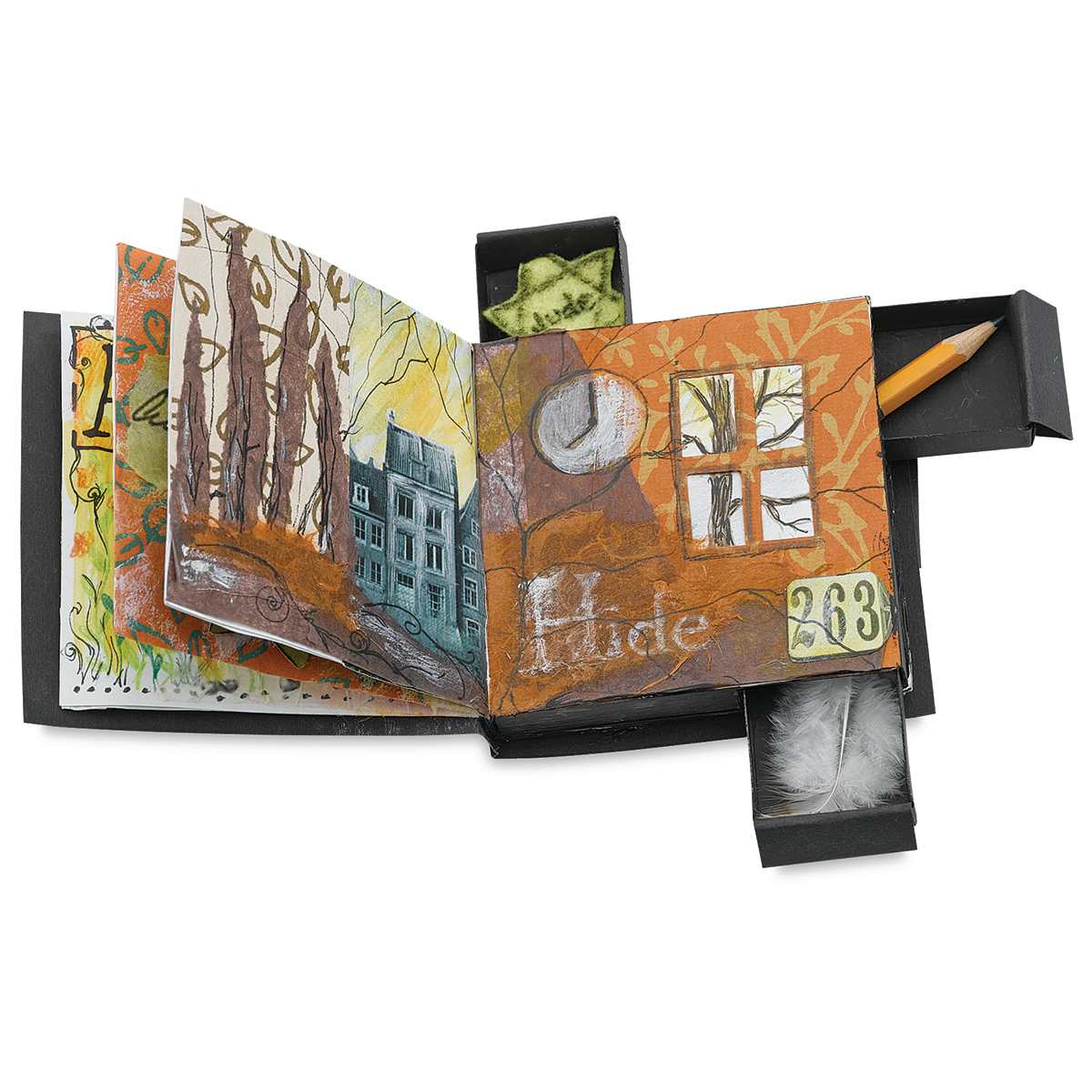 This book-making and collage project uses small matchboxes as drawers to tuck away secrets, supporting a variety of literary and historical studies, such as “The Hiding Place” (Anne Frank) or the Underground Railroad.