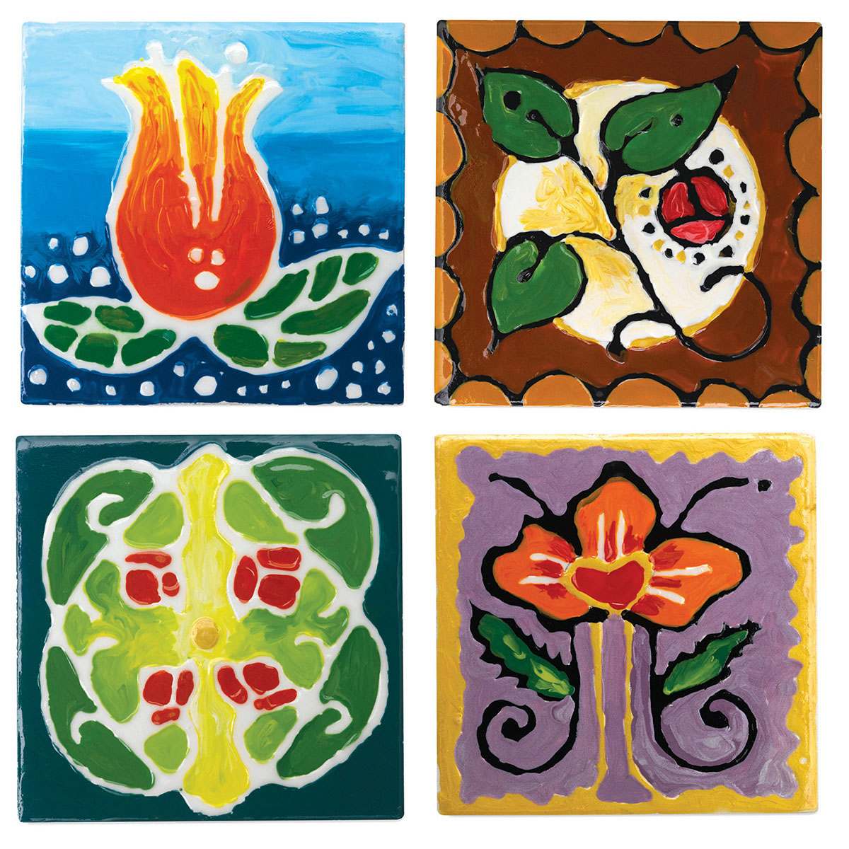 Beginning in the early 1880s, the “Art Nouveau” style flourished in all forms of art. Beautiful pottery was mass-produced during this era, especially in the form of decorative tiles. Tube lining — a technique in which a design outline was created first and then filled in with color — is the definitive look of Art Nouveau. If kiln-glazed ceramics are not an option for your environment, this project is a way to produce glossy, hand-painted tiles that look like the real thing.