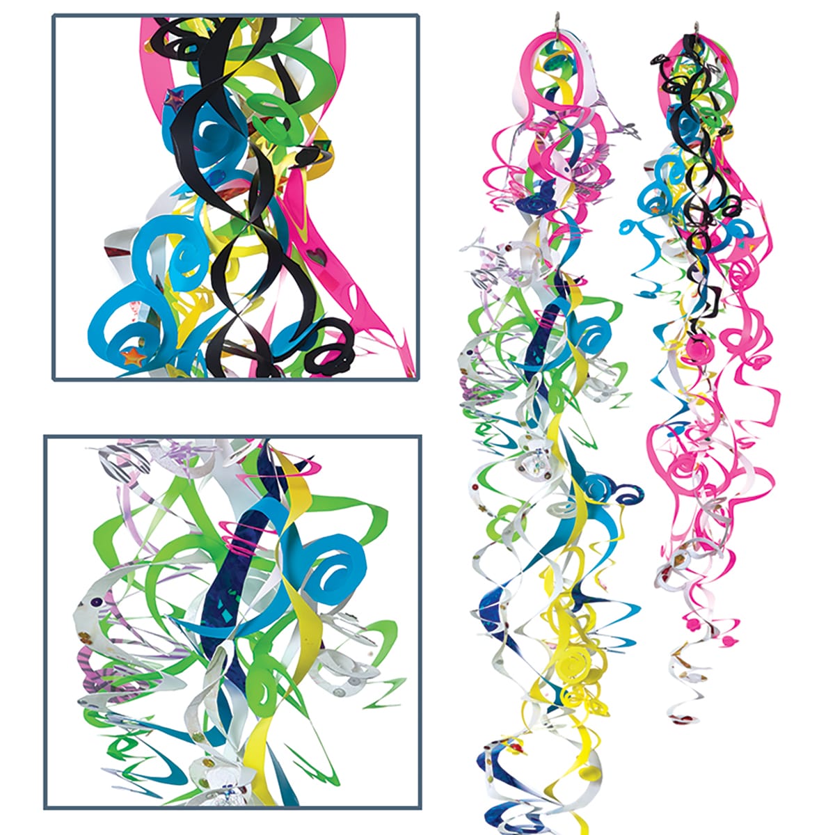 Whimsical, colorful, and much easier than one would expect, these paper creations make festive decorations for mere pennies. A simple spiral cut — a line that starts on the edge of a circle and continues to the center — is the only skill needed. No glue, no extra construction. The secret is starting with multiple conjoined circles.
