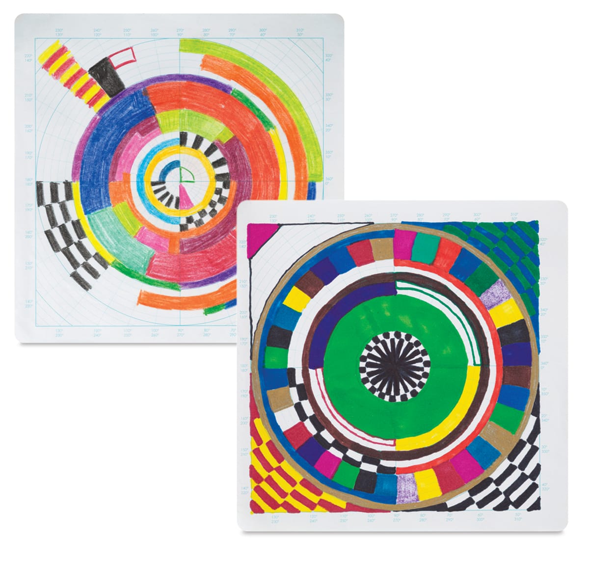 A coloring game inspired by postmodern artist Sol LeWitt. LeWitt produced approximately 1,350 “Wall Drawings,” but rarely painted one himself. He provided the concept, then collaborated with others to actually produce the work. In this simple game, students receive the exact same set of instructions and materials, but execute them according to their own interpretations.