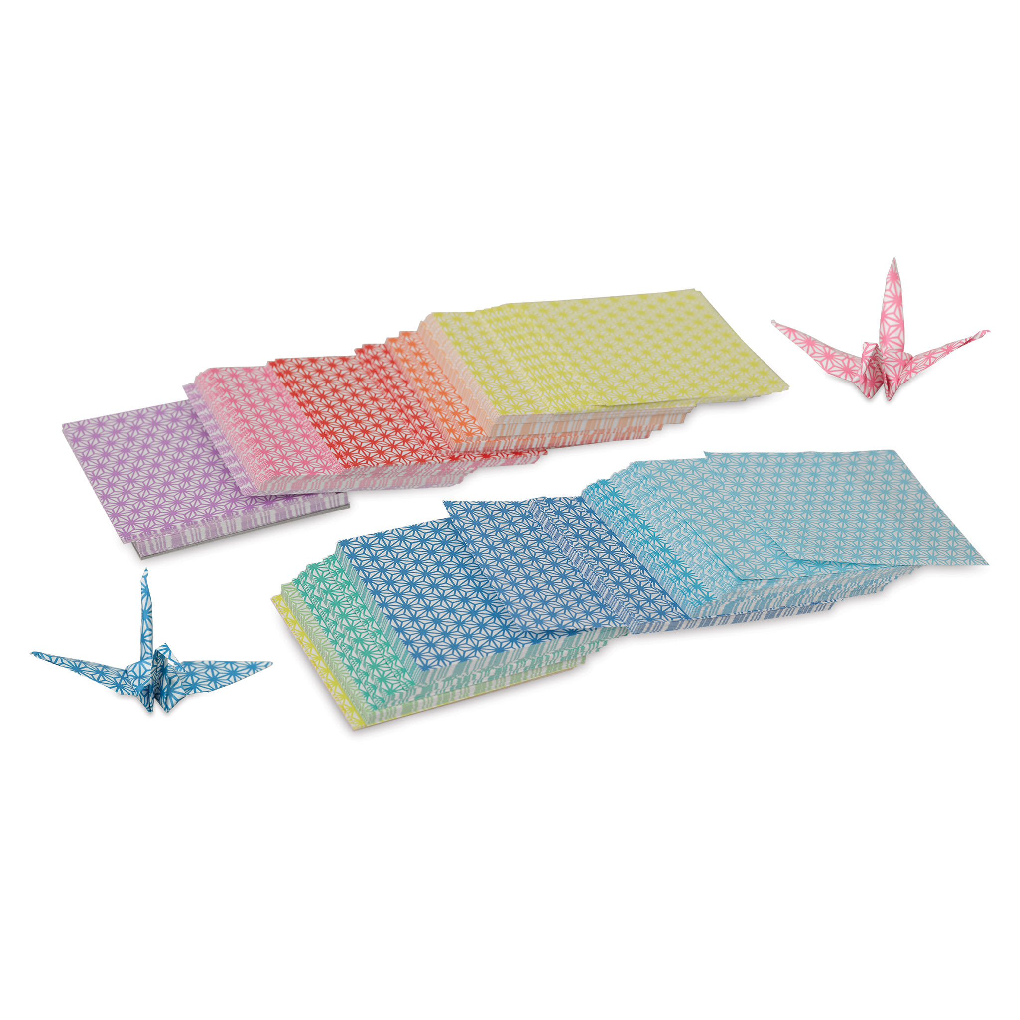 Create exquisite paper artwork with the Aitoh Chiyogami Star Pattern Thousand Cranes Origami Kit. According to Japanese legend, a person who folds one thousand origami cranes will be granted happiness and good luck. Perfect for classrooms, this kit contains 1,005 square, star-patterned origami sheet...