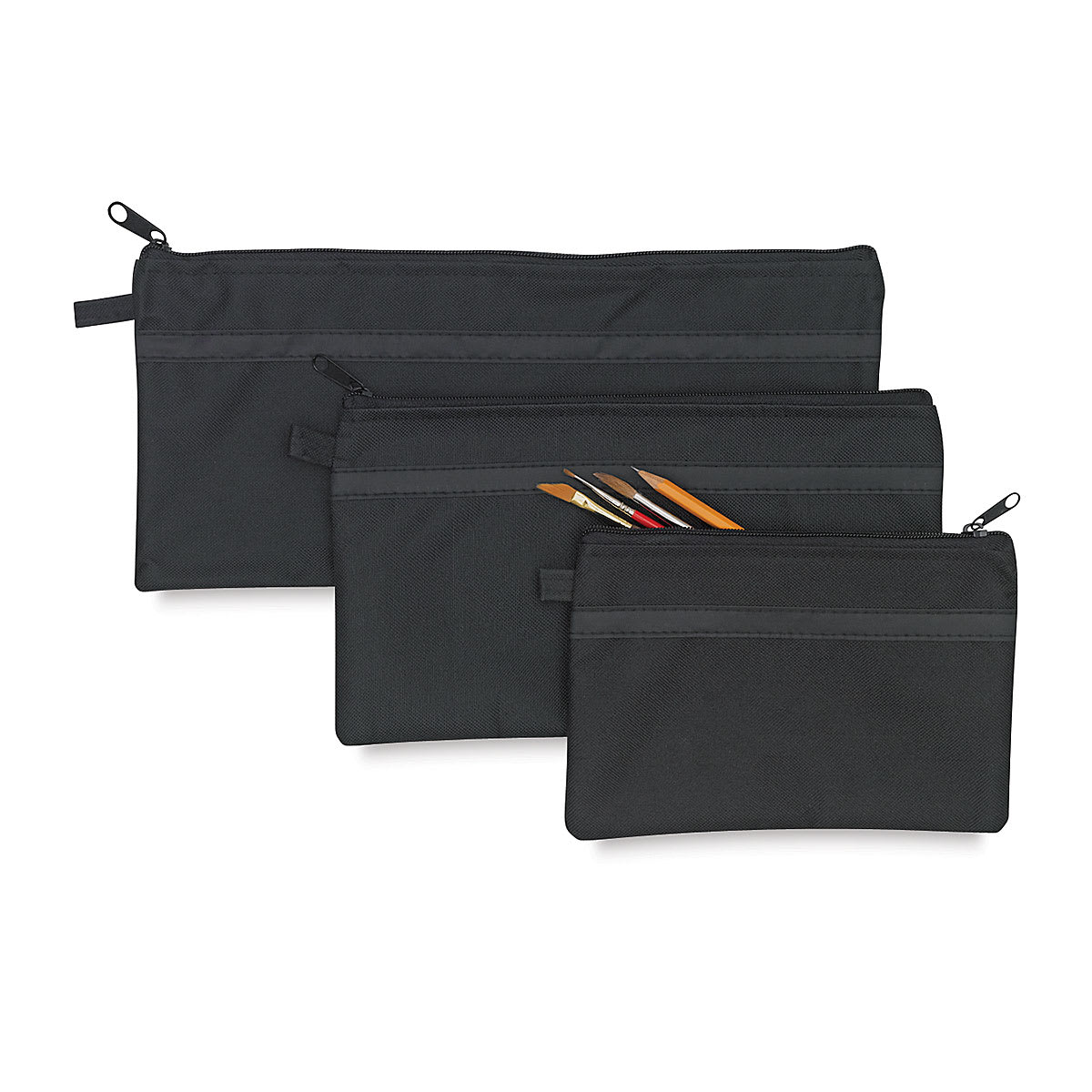 Made from lightweight, strong, waterproof nylon, these handy zippered bags keep art and drafting supplies, personal items, and documents organized and safe.