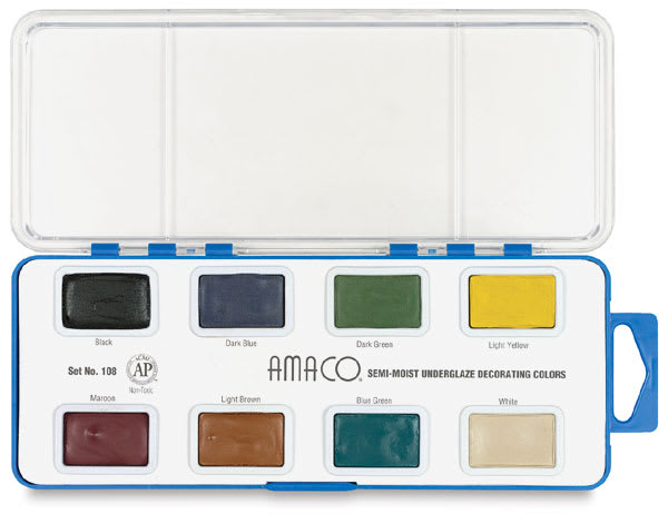 Use these fine-art decorating colors in watercolor pans for intricate, fine detail on figurines, dinnerware, etc. Intermix for tints and shading. Sets are packaged in plastic boxes with hinged lids.