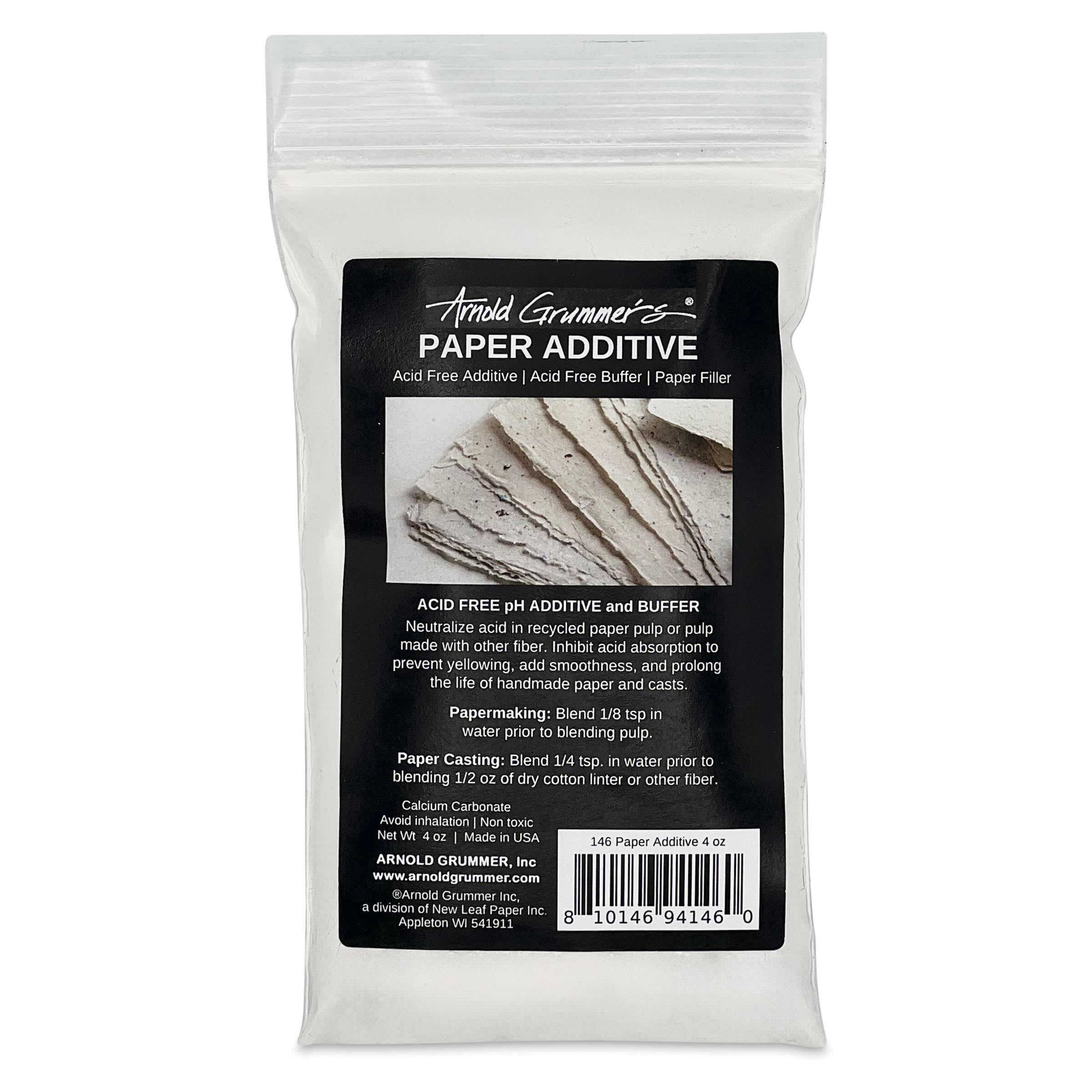 Create beautifully smooth, long-lasting paper with Arnold Grummer’s Acid Free Paper Additive. Made of calcium carbonate, this additive neutralizes the acid in pul...