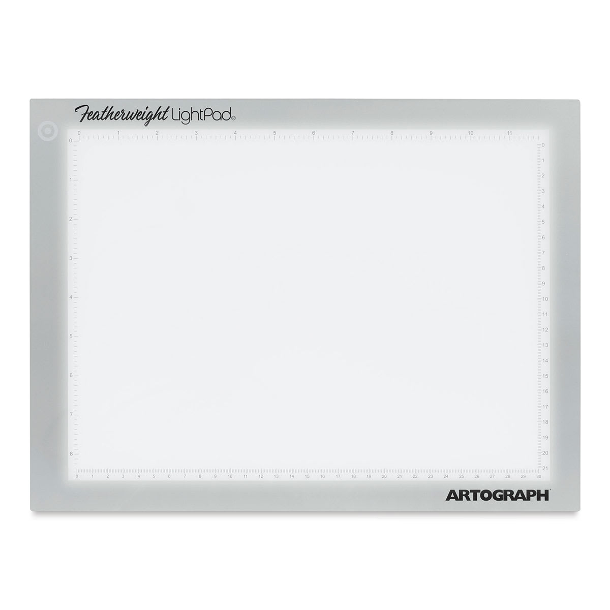 Artograph Featherweight LightPad, 9" x 12" Work Area 9"W x 12"L 23 cm x 30.5 cm Overall Width 10-1/2" 26.7 cm Overall Length 14" 35.6 cm Overall Height 1/4" 0.6 cm