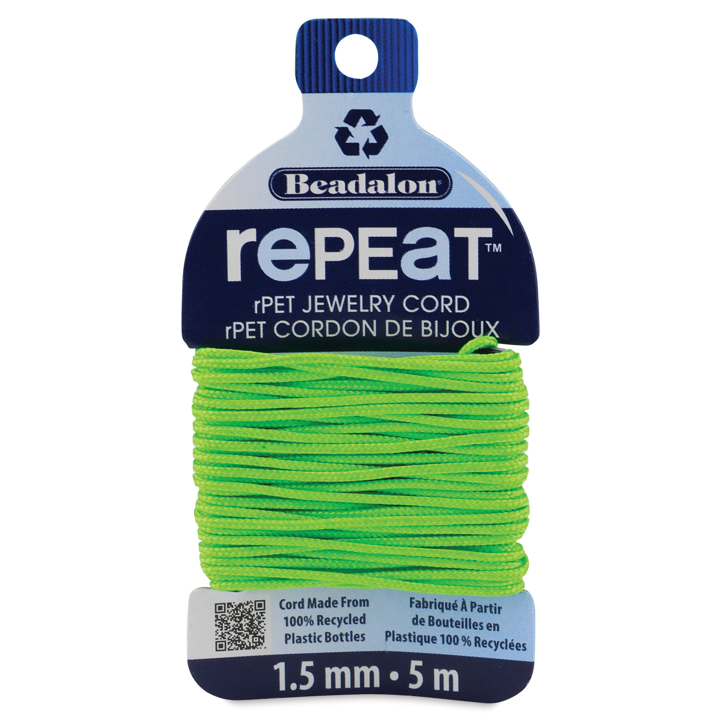 Create custom, earth-friendly jewelry with Beadalon Repeat Jewelry Cord. Made from 100% recycled plastic bottles and featuring a braided texture, this durable cord is great for making beautiful and intricate slide bracelets, necklaces, anklets, friendship bracelets, Kumihimo braids, and other braide...