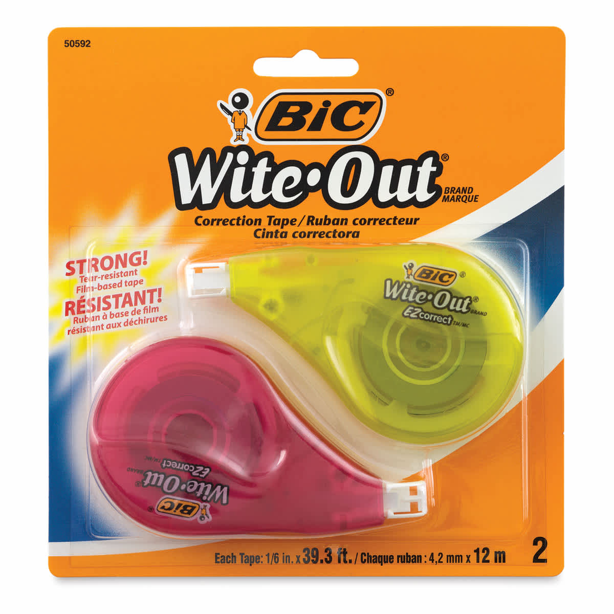Fix mistakes fast with BIC Wite-Out EZ Correct Correction Tape. The easy-to-apply, tear-resistant dry tape lays down quickly and can be written on immediately. Housed in a translucent dispenser that shows how much tape remains, the dispenser holds 39.3 feet of correction tape.