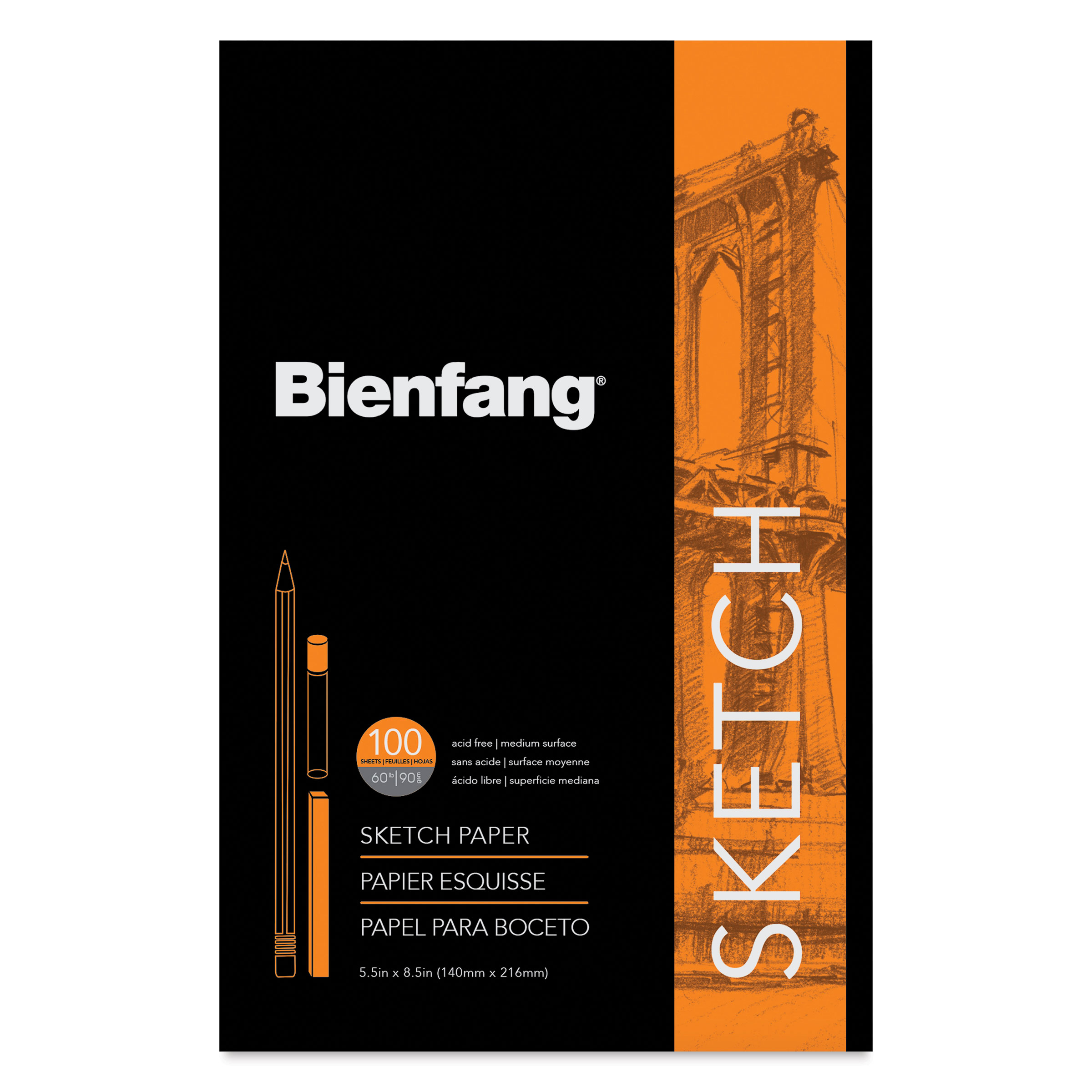 Bienfang Tapebound Sketch Pads offer a dependable, everyday surface for artists who sketch often. Each pad includes 100 sheets of 60 lb (90 gsm) white, acid-free paper with a fine tooth that handles graphite, colored pencil, charcoal, soft pastel, and ink cleanly.
