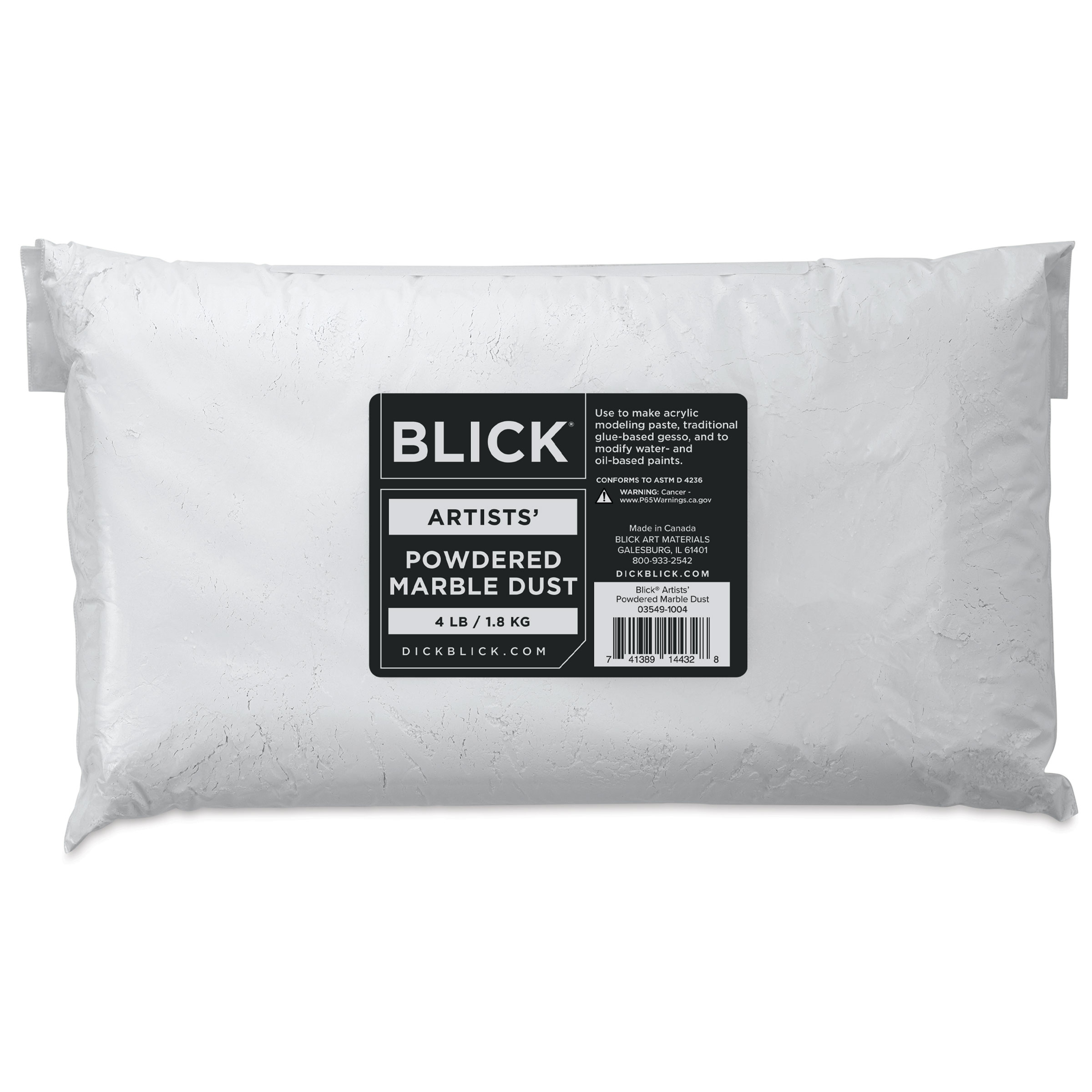 Made from pH-neutral calcium carbonate, Blick Powdered Marble Dust is ideal for creating acrylic modeling paste, traditional glue-based gesso, and textured grounds for drawing. It can also be combined with water and oil dispersed paints to add bulk and create textural effects without modifying color...
