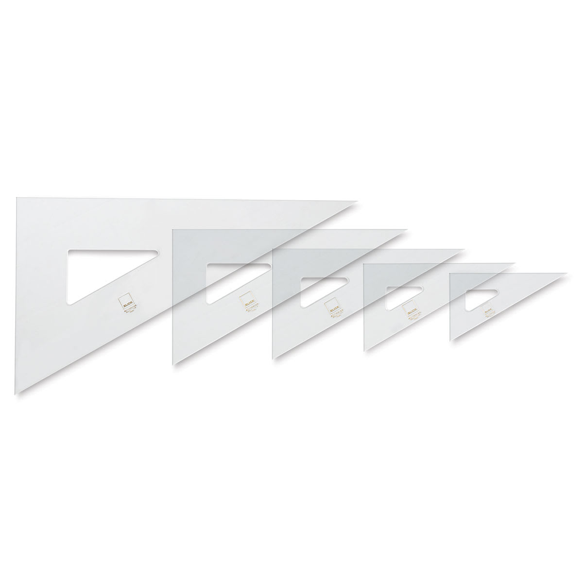 Blick Triangles are made of clear acrylic plastic, .080" (2 mm) thick, with finger lifts. Two styles are available — 45°/90° and 30°/60°.