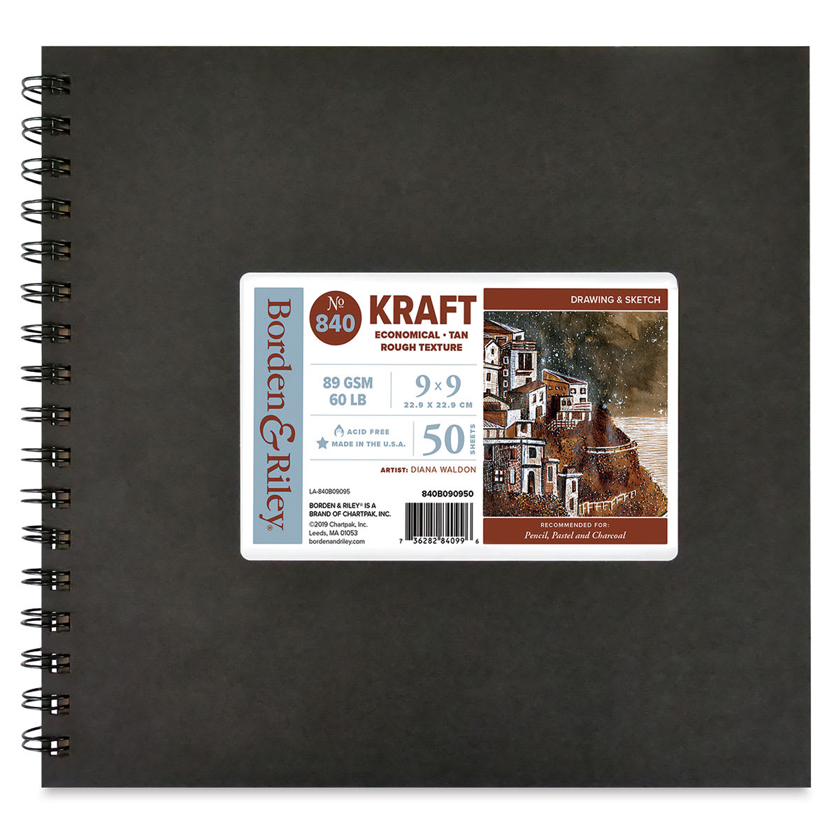 Borden & Riley #840 Kraft Paper Sketchbook - 9" x 9", front cover