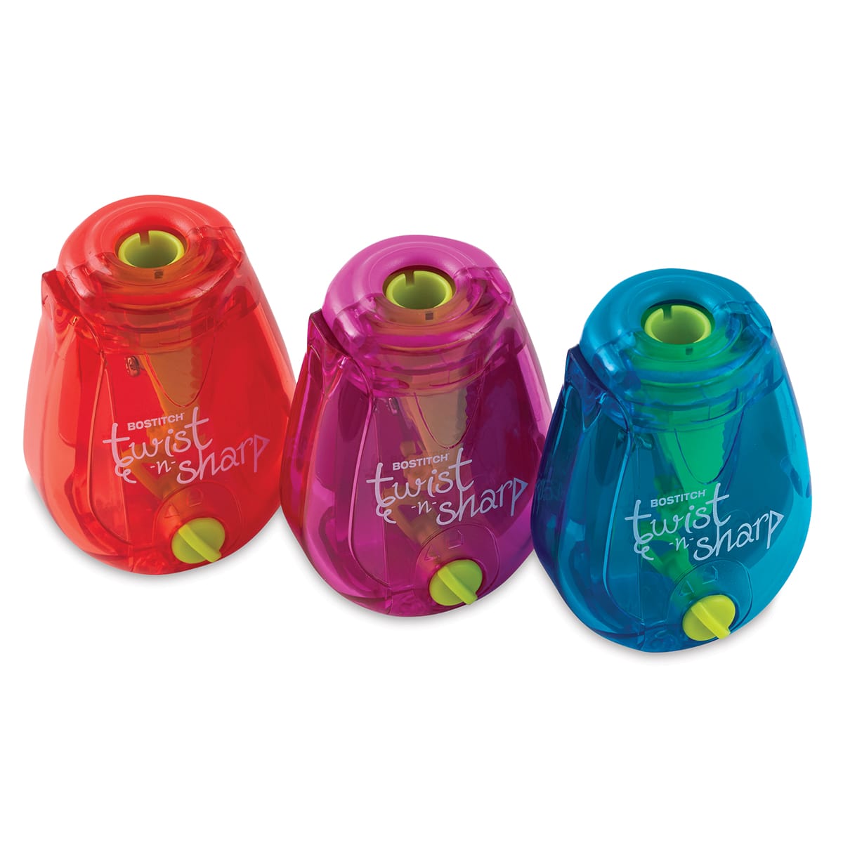Sharpen pencils to the perfect point or blunt tip with a few twists of the wrist! The Bostitch Twist-n-Sharp Pencil Sharpener has a special ratchet mechanism that makes manual sharpening quick and effortless for artists of all ages, plus its compact size is perfect for tucking into a backpack or ...