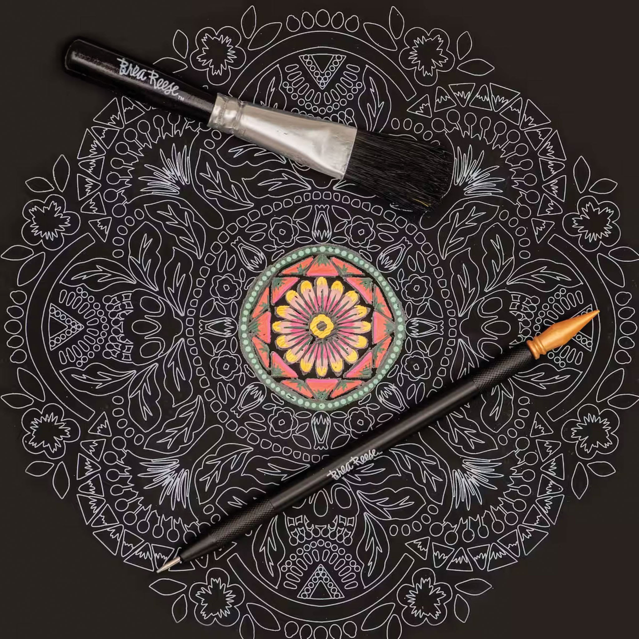 Uncover your artistic potential with Brea Reese Scratch Art Kits. Each pad features two each of six original designs— follow the outlines, scratching as much or as little as you like to reveal the art underneath. Pads measure 8" x 8" and include 12 pages, plus a dual tip stylus and brush.