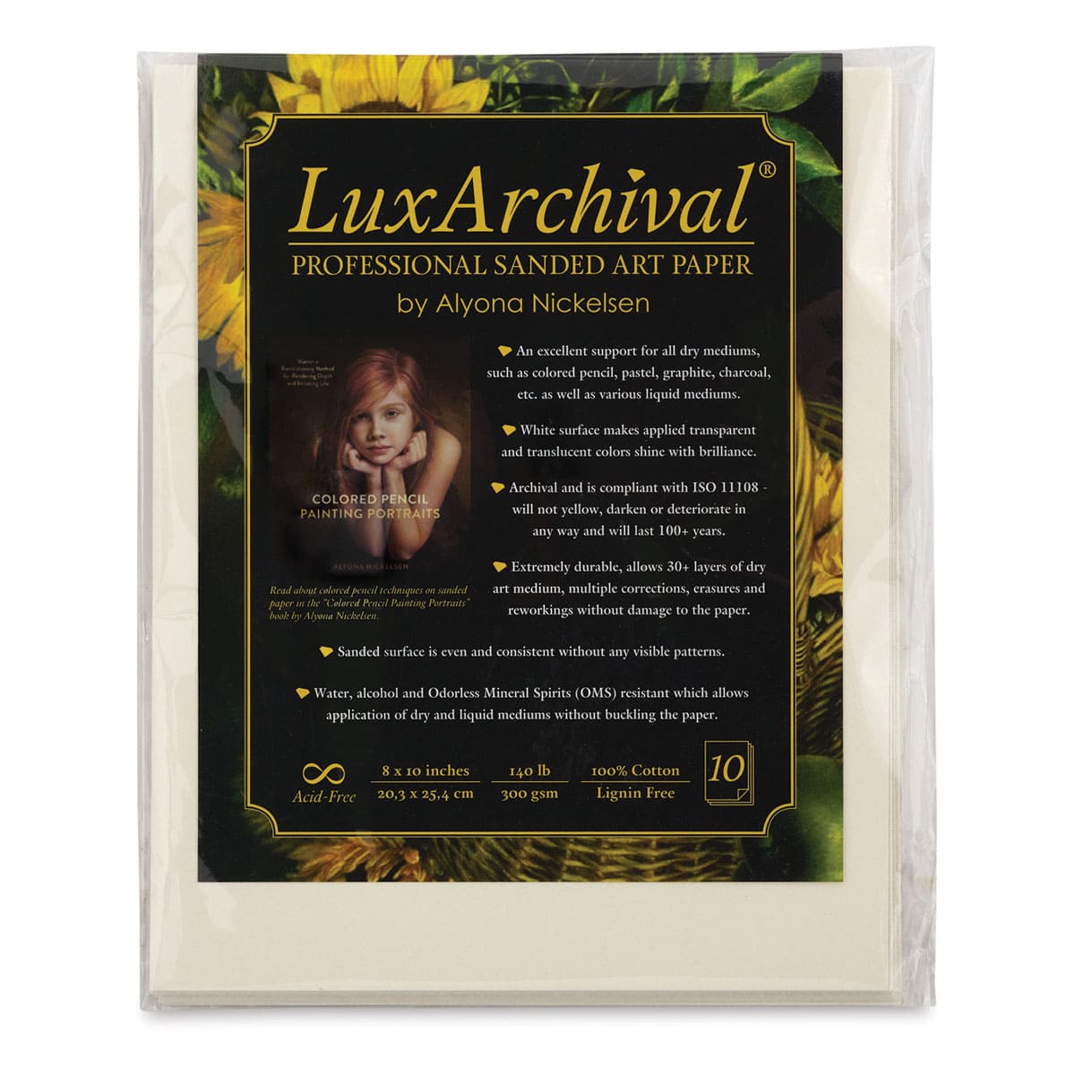 Brush and Pencil LuxArchival Professional Sanded Art Paper - Front view of 8" x 10" Pkg of 10 sheets