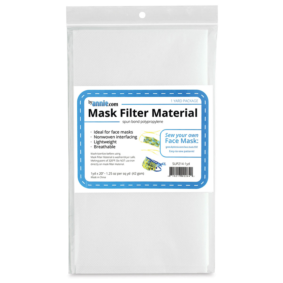 Enhance the comfort and filtration of your handmade or purchased face masks with By Annie Mask Filter Material. The non-woven interfacing material is light, so it won’t add unwanted weight to your mask. It’s also breathable to allow for comfortable airflow.