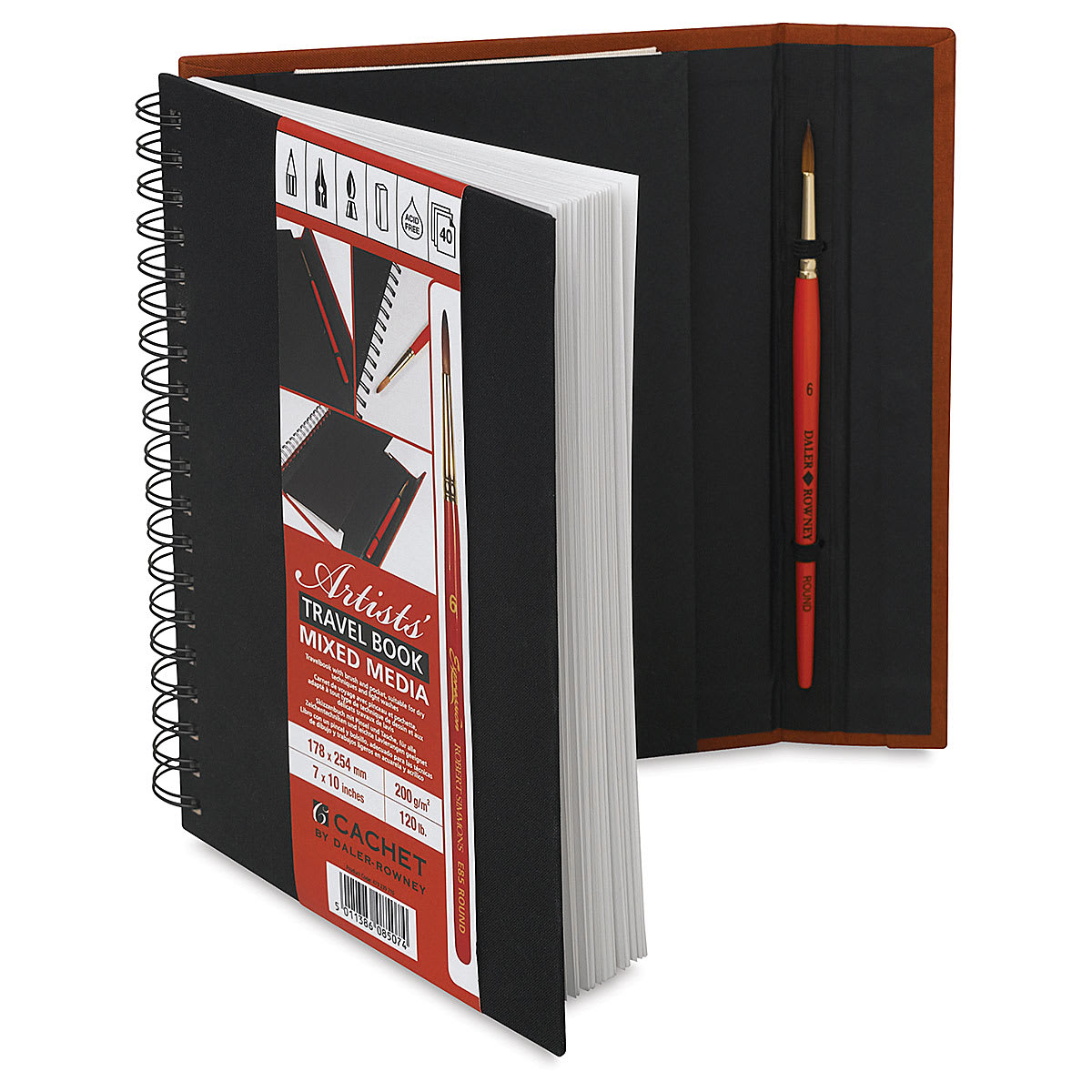 The magnetic closure on this handy, spiral-bound travel book ensures that loose sheets won't slip out, and the 40 sheets of heavyweight 120 lb (220 gsm) paper offer a smooth surface for your mixed media creations. The Cachet Mixed Media Artist Travel Book has a two-tone Black/Sienna cover with ...