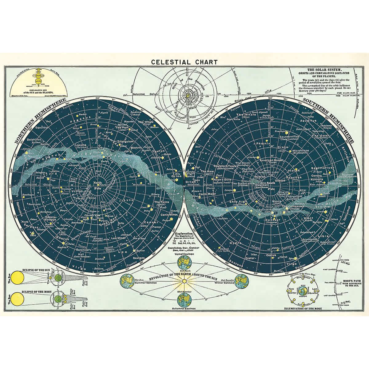 Bring out your inner stargazer with Cavallini Celestial Chart Gift Wrap. This archival gift wrap features constellations of the northern and southern hemispheres, solar and lunar eclipses, solstices and equinoxes, phases of the moon, sizes and distances of the planets, and star magnitude. Use it for...