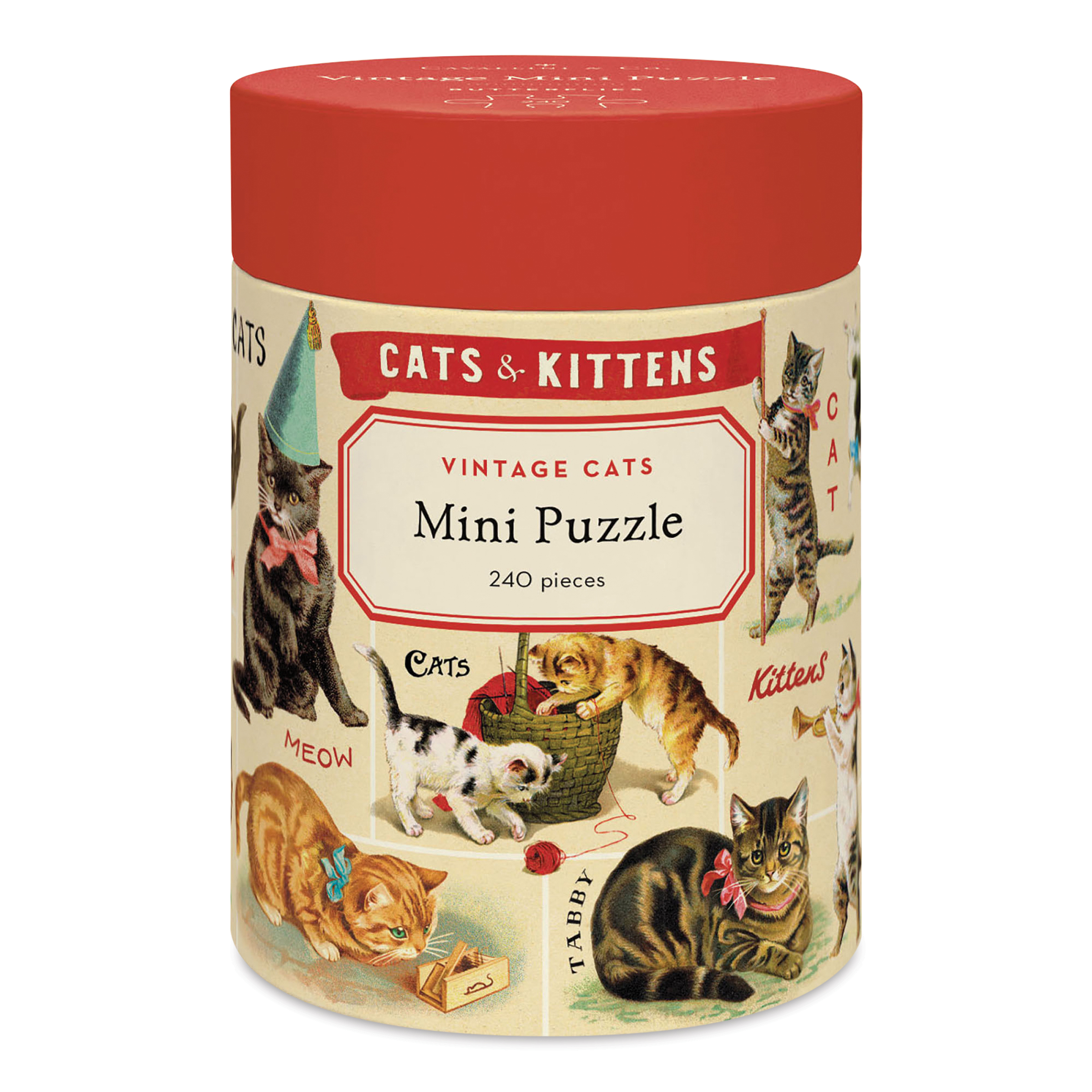 This Cavallini Vintage Cats 240-Piece Mini Puzzle features a delightfully cat-centric vintage h...
