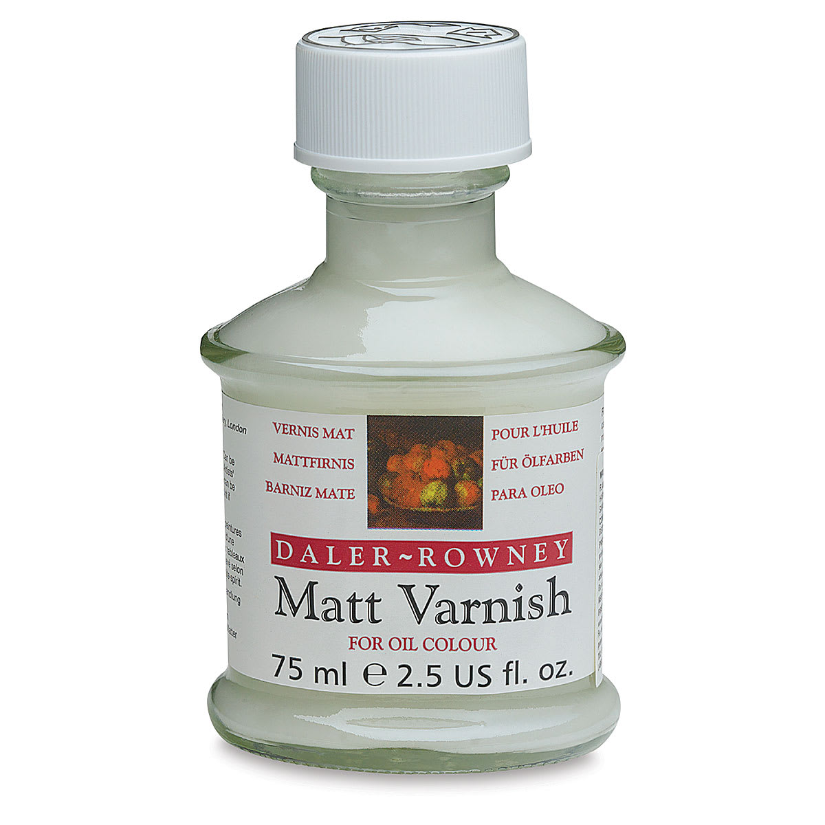 Daler-Rowney Matte Varnish is removable, non-yellowing, and dries to a matte finish. It can be mixed with Clear Picture Varnish to achieve a range of semi-gloss finishes. Apply it to both oil and acrylic paintings, and remove it with turpentine or white spirits.