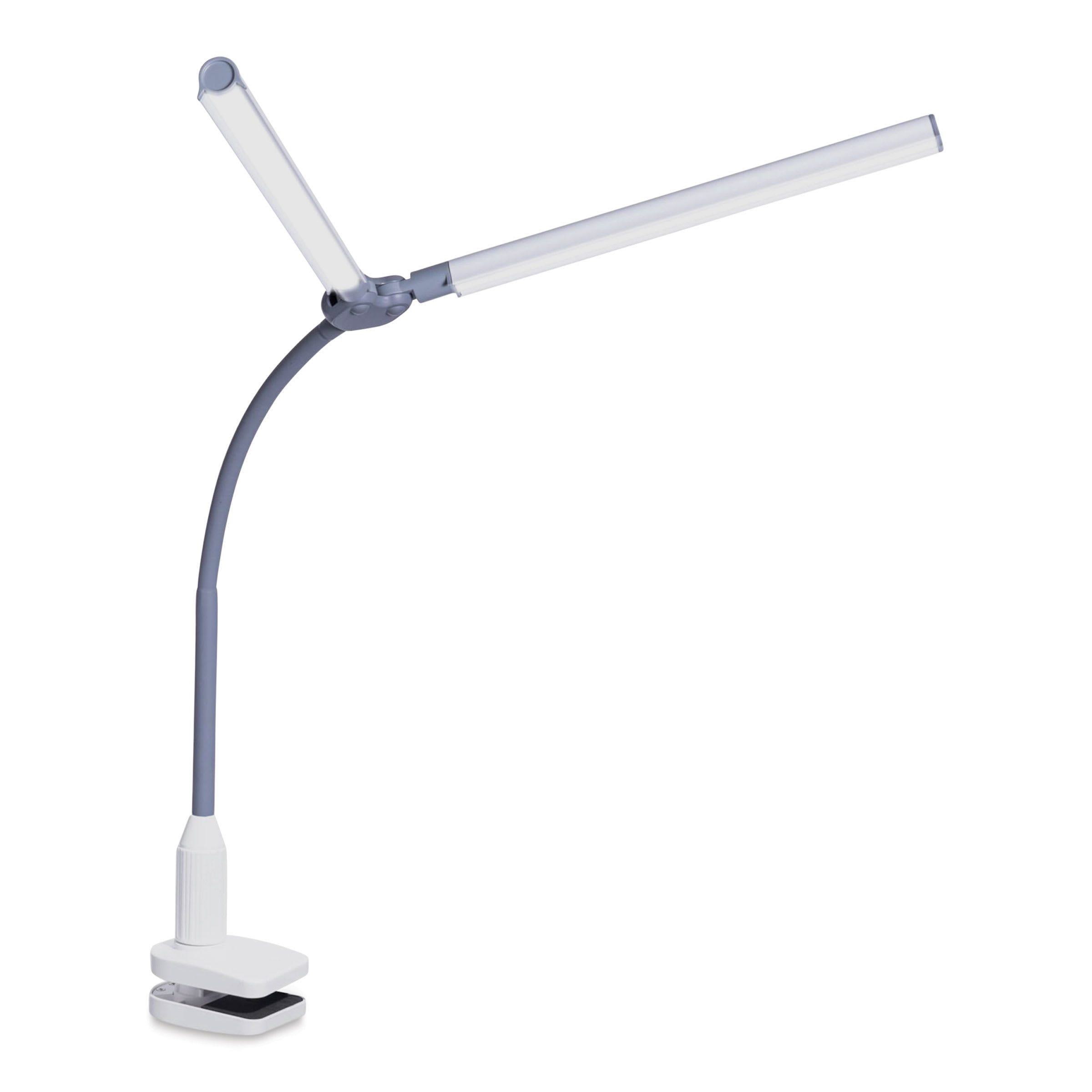 • Double-shaded LED lamp with a desk clamp and flexible arm