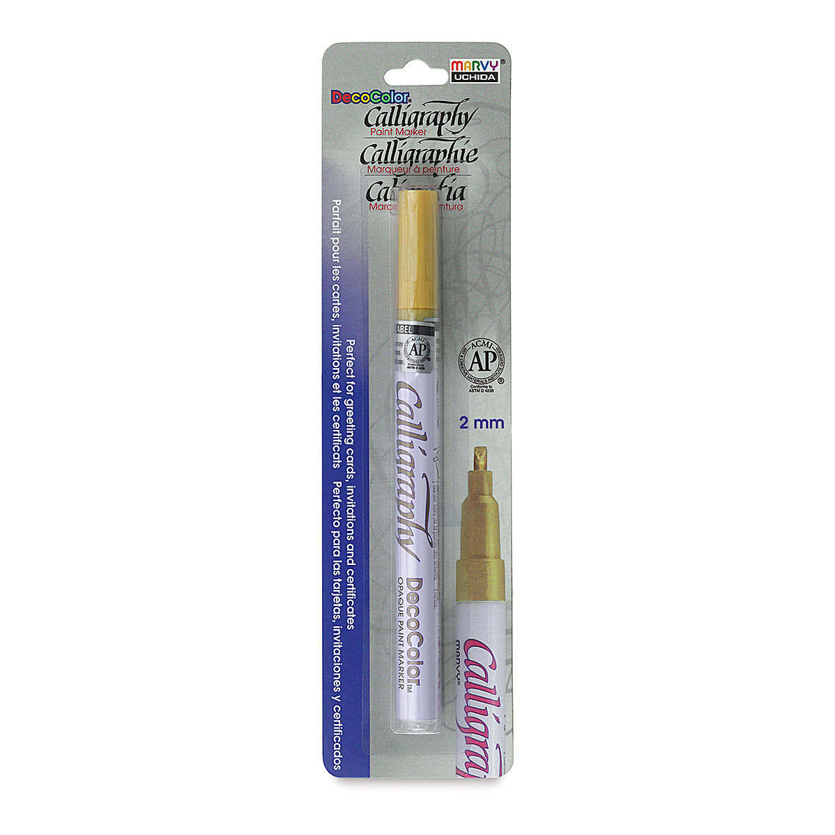 Start lettering with these Decocolor Calligraphy Paint Markers! Use the flat 2 mm nib to design elegant personalized gifts, invitations, documents, and announcements. The acid-free, non-toxic, lead free xylene-based paint is permanent, weatherproof, and lightfast. The markers work on most surf...