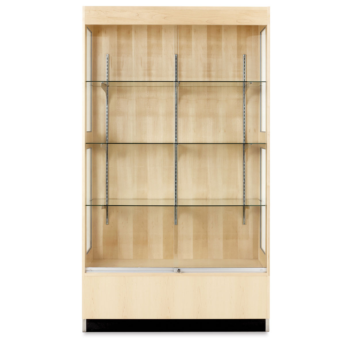 Display anything from artwork to trophies in the attractive maple Premier Display Cabinet from Diversified Spaces. One fixed bottom shelf and three adjustable tempered glass shelves provide lots of flexible presentation options.