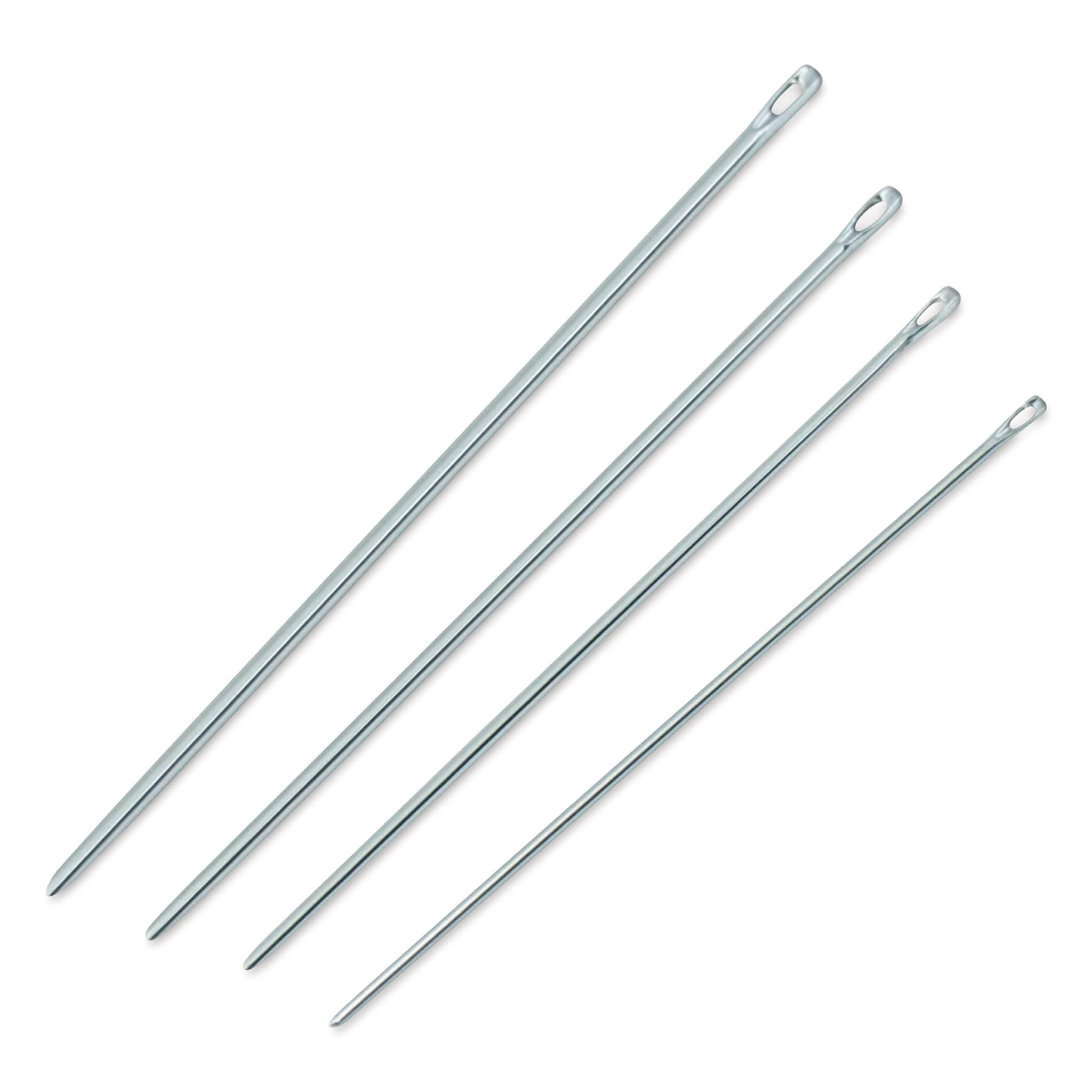 Seamsters and crafters can easily work on knit and stretch fabrics with Dritz Ball Point Hand Needles. These needles feature rounded ends that push knit loops apart rather than piercing the fabric and leaving holes behind.