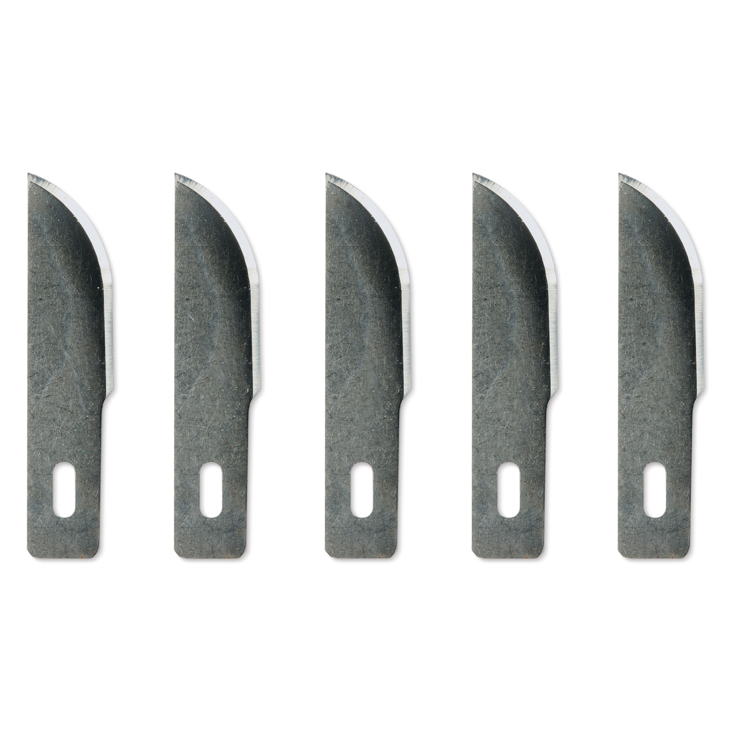 • Pack of 5 carbon steel blades with a curved edge