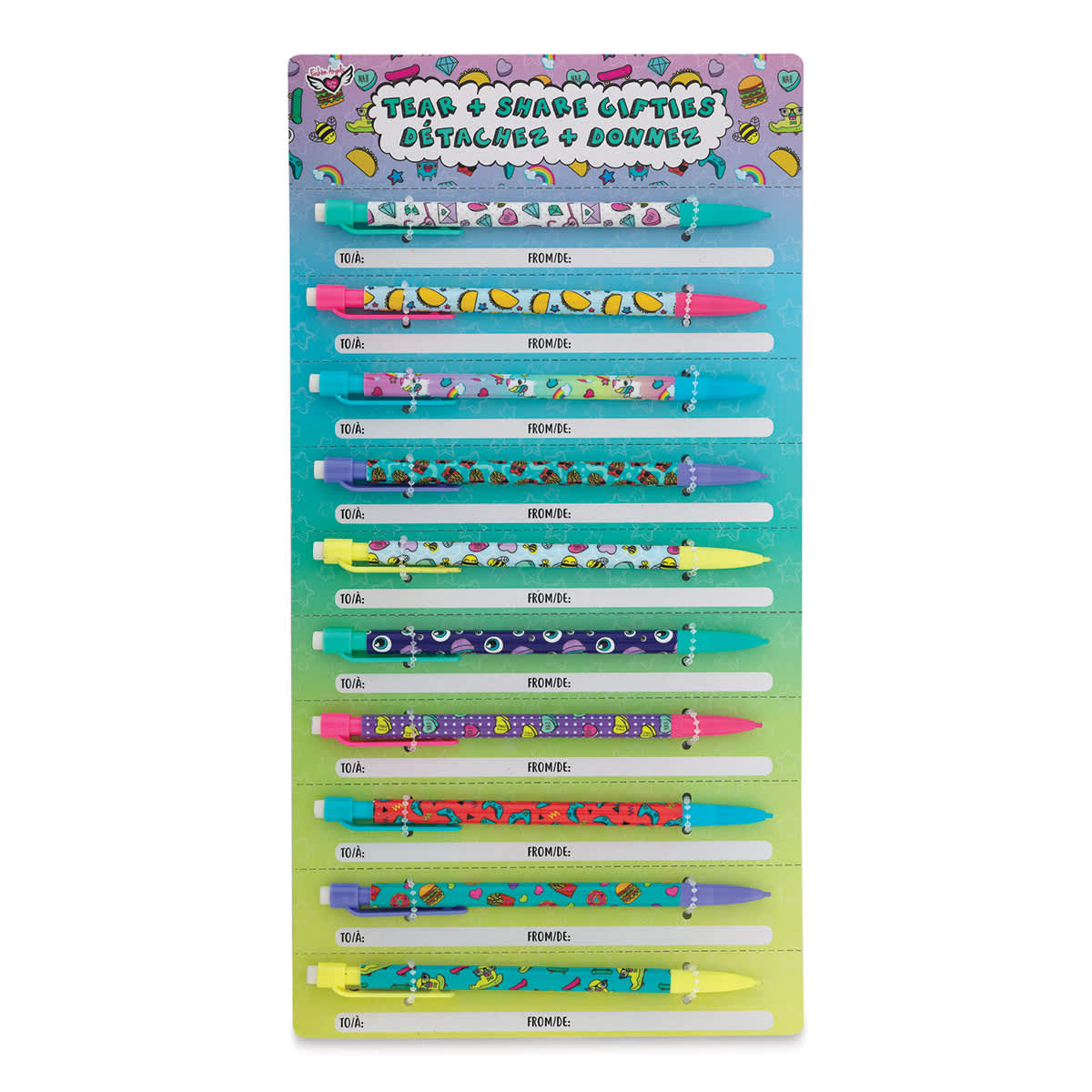 Learn the art of sharing! Fashion Angels Tear and Share Packs make it fun to share craft supplies and fun messages with your friends and classmates. Each pack includes nine or ten cards that feature a cute message on the card and include a small gift with a trendy print or design. Give your frien...