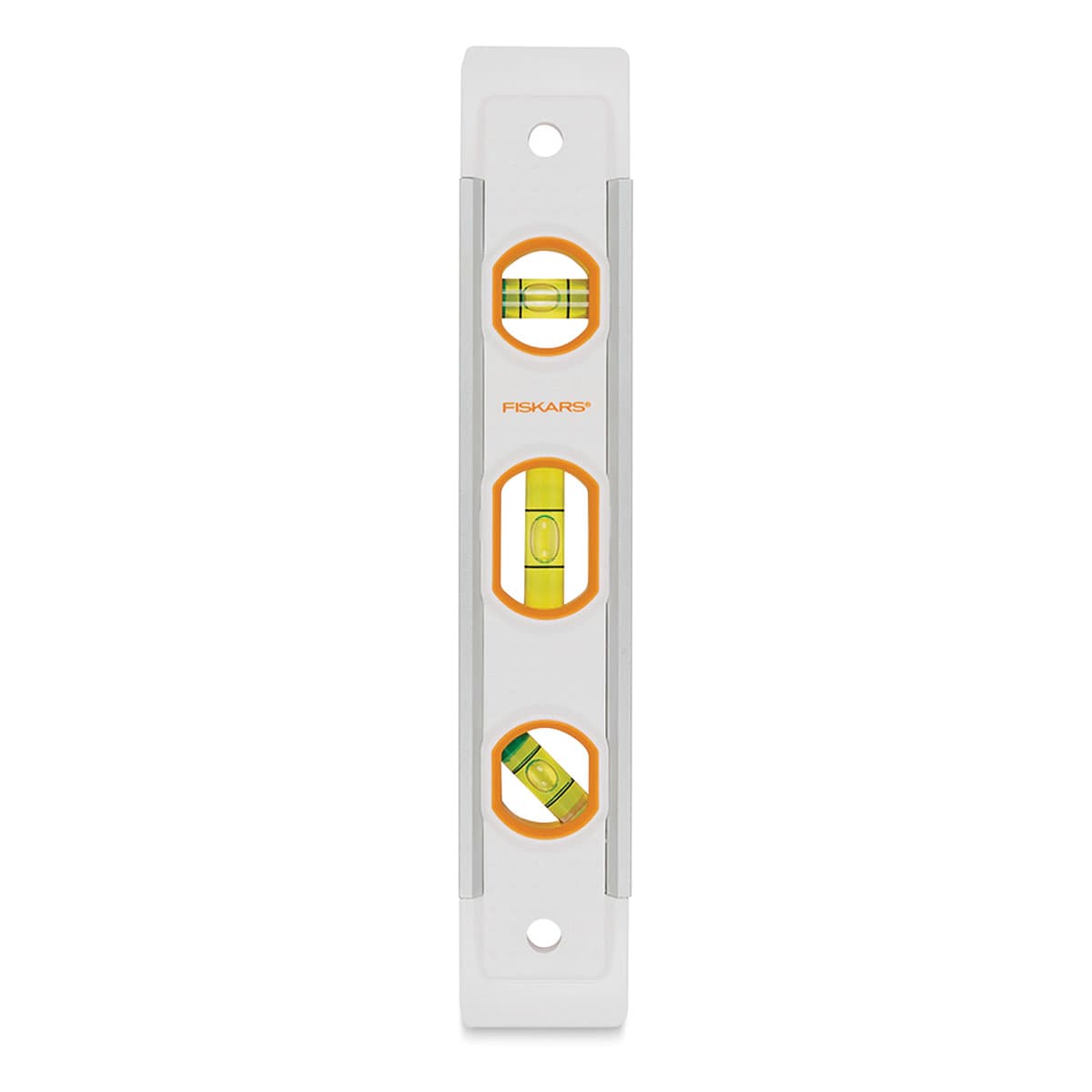 Create accurately leveled home décor and craft projects with the Fiskars DIY Precision Level. This essential tool has three vials and a top-view window for precise leveling and angling.