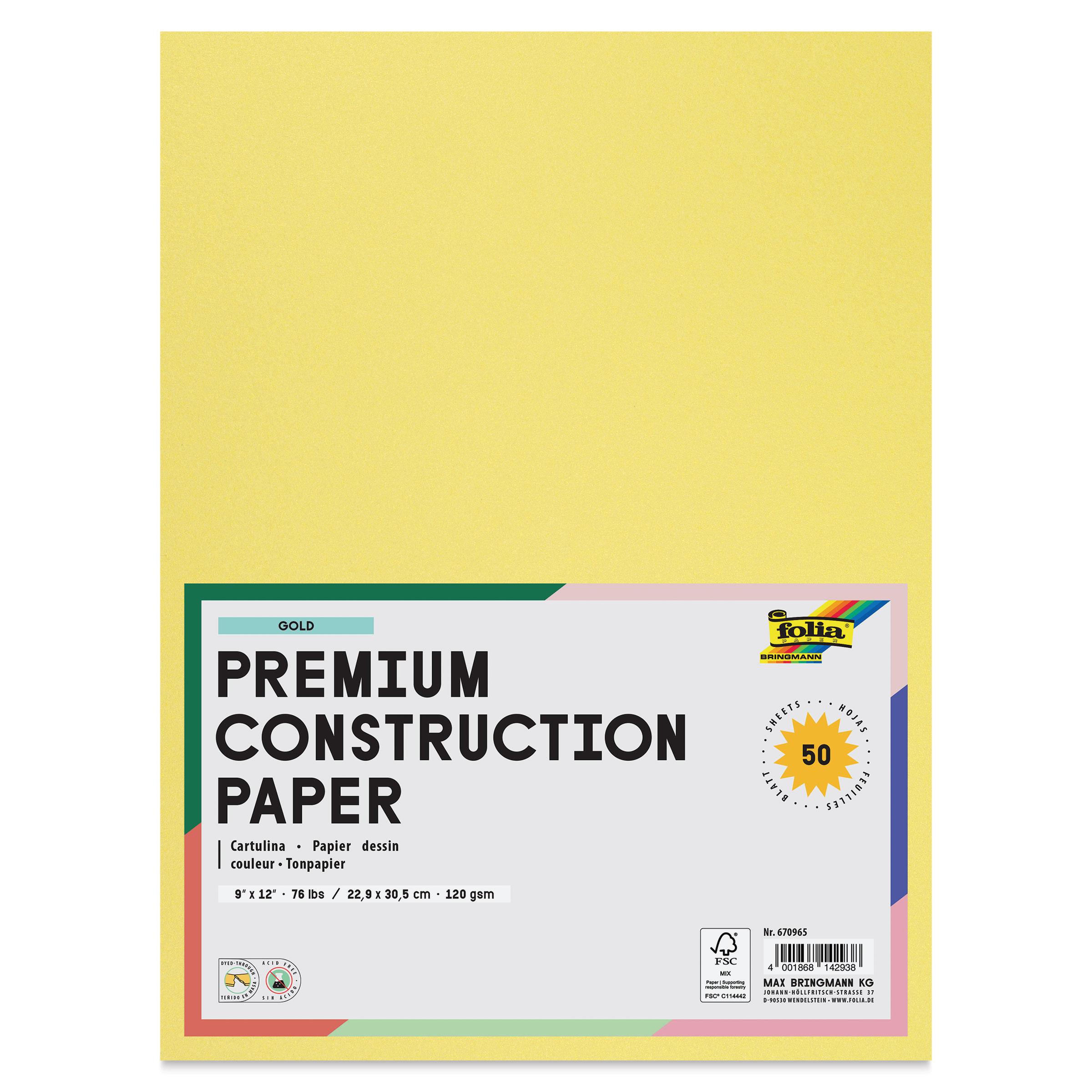 Folia Premium Metallic Construction Paper offers a bold, reflective metallic fini...