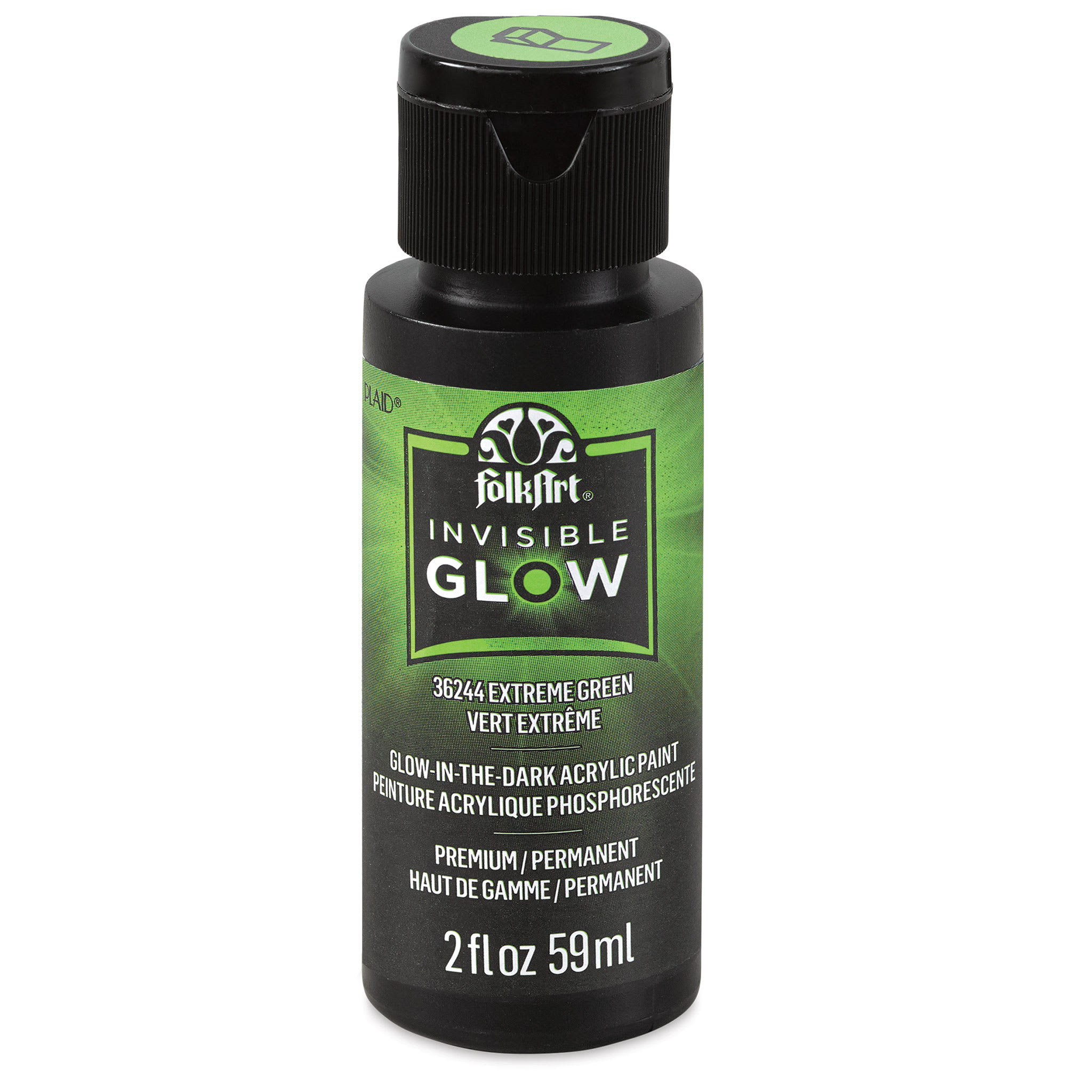 Add colorful glow-in-the-dark effects to décor, props, school projects, and artwork with FolkArt Invisible Glow. Once dry, this non-toxic, waterbased acrylic paint glows colorfully in the dark, yet is invisible in the light. Invisible Glow is powerful, long-lasting, and ideal for use on a wide range...