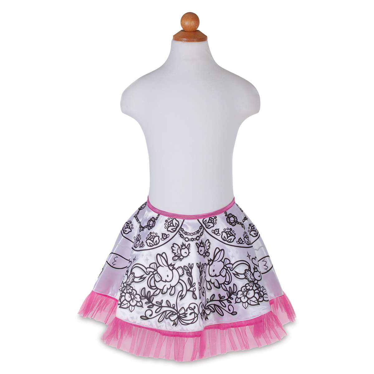 Let your inner fashionista shine with the Great Pretenders Colour-a-Skirt. Personalize your skirt by coloring in the preprinted design with your favorite colors. It also has a sparkling pink, printed liner underneath, enabling it to be fully reversible.