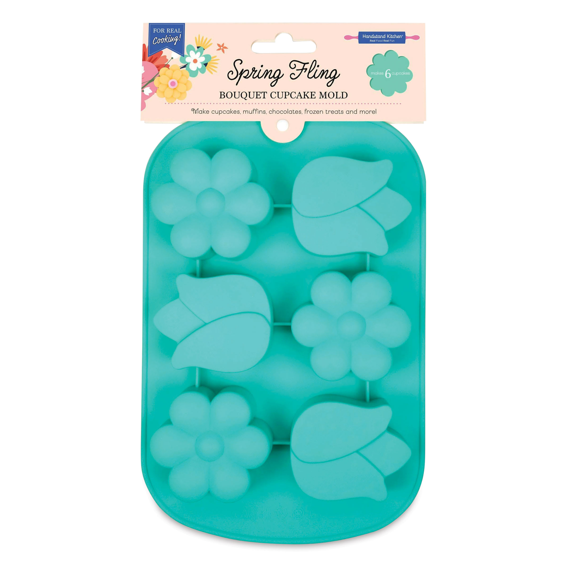 Whip up some fun-shaped treats for birthdays, family gatherings, or just because with Handstand Kitchen Cupcake Molds. Use these silicone molds to make cupcakes, chocolate, ice cubes, jello, soap, and more. The molds are BPA-free, safe for use in the oven, freezer, and microwave, and can be washed i...