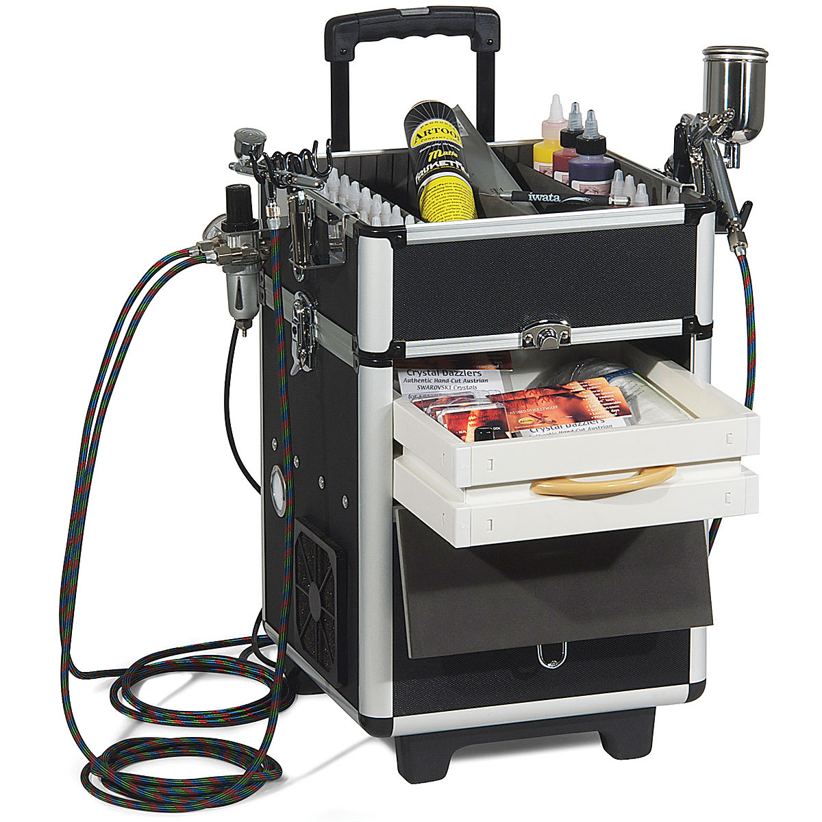Maxx Jet Compressor - Angle view open, top detached, drawers open with accessories not included