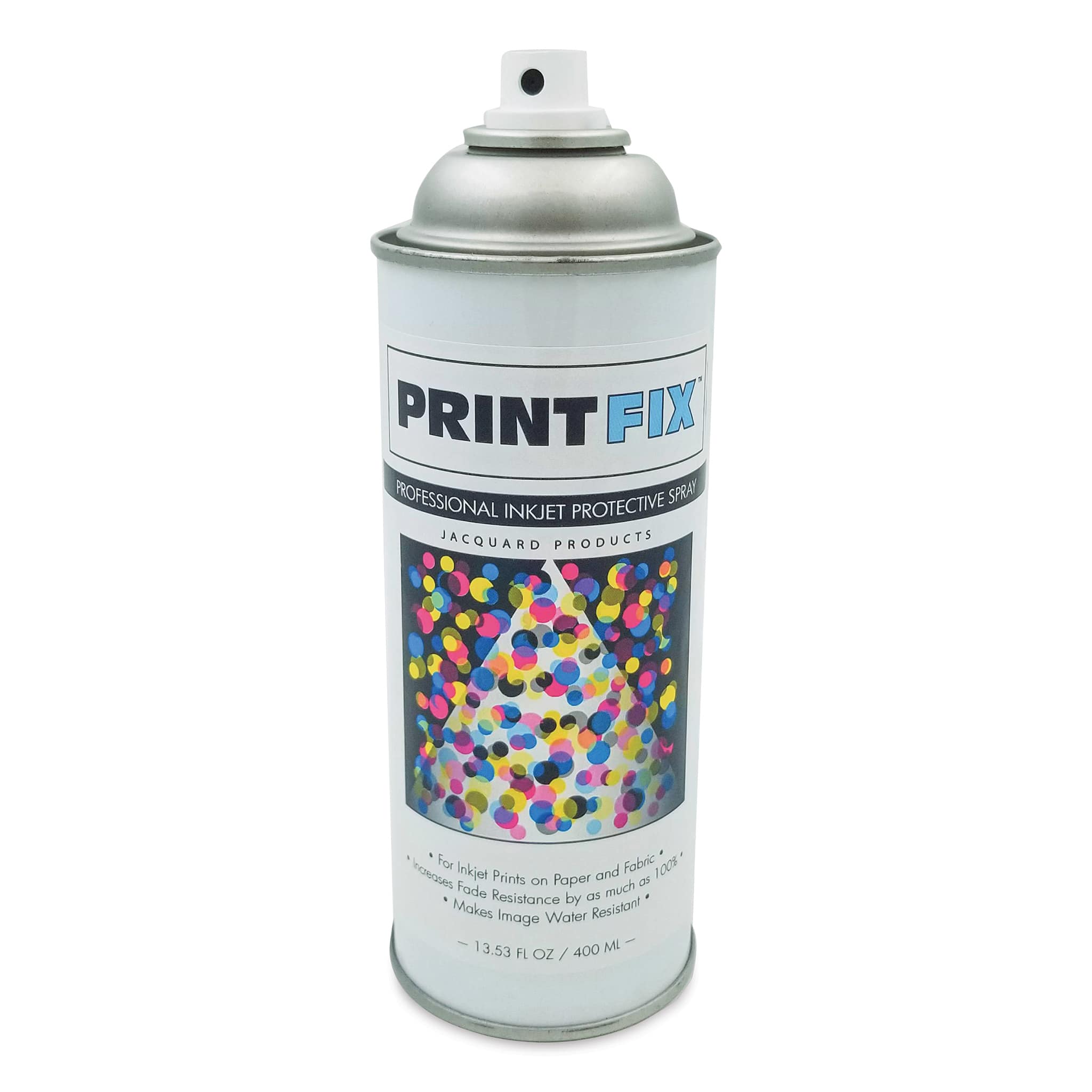 Preserve your artwork with Jacquard PrintFix Protective Spray. When applied, this low-odor aerosol spray creates a powerful barrier that protects against UV fading, fingerprints, dust, moisture, and humidity. Use it on watercolors, silk paintings, giclee and inkjet prints, or any other printed, dyed...