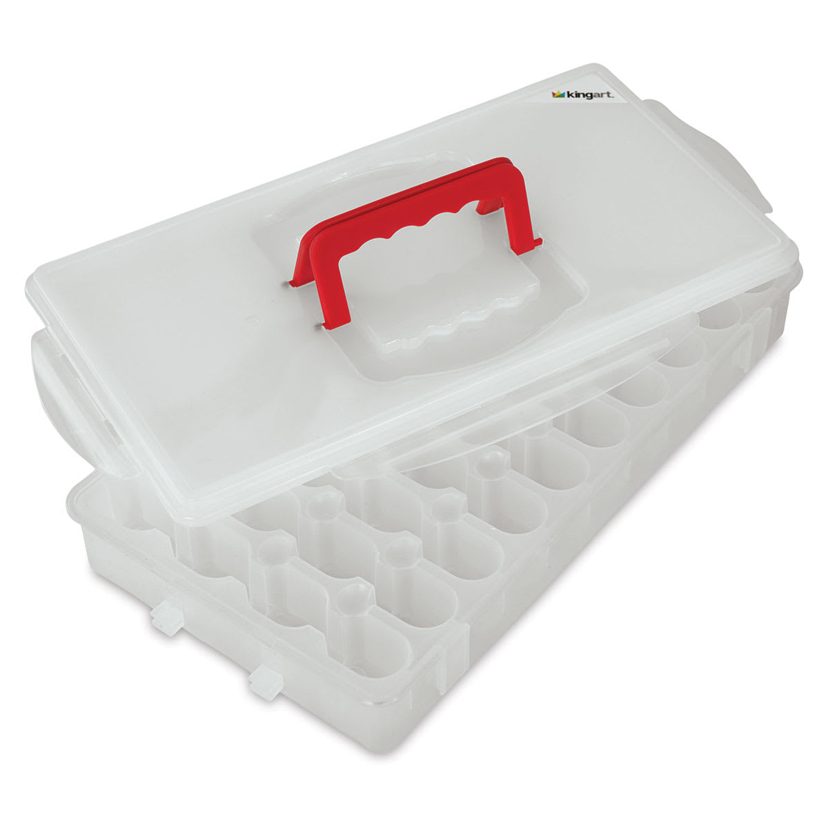 Keep both pure and mixed colors separated in the KingArt 40-Well Plastic Storage Palette. It features 40 deep wells that hold paint without leaking and an air-tight lid that snaps shut to prevent paint from drying out. Its plastic tray makes cleaning a breeze.