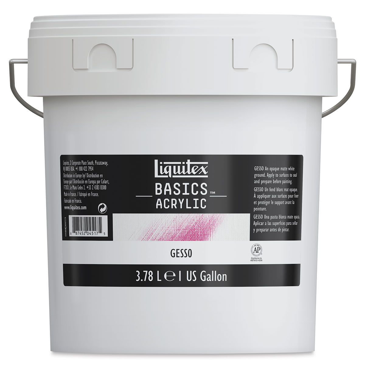 Liquitex Basics Acrylic Gesso is formulated to produce a smooth, absorbent, finely textured ground for painting on most porous surfaces, including canvas, paper, fabric, wood, or plaster.