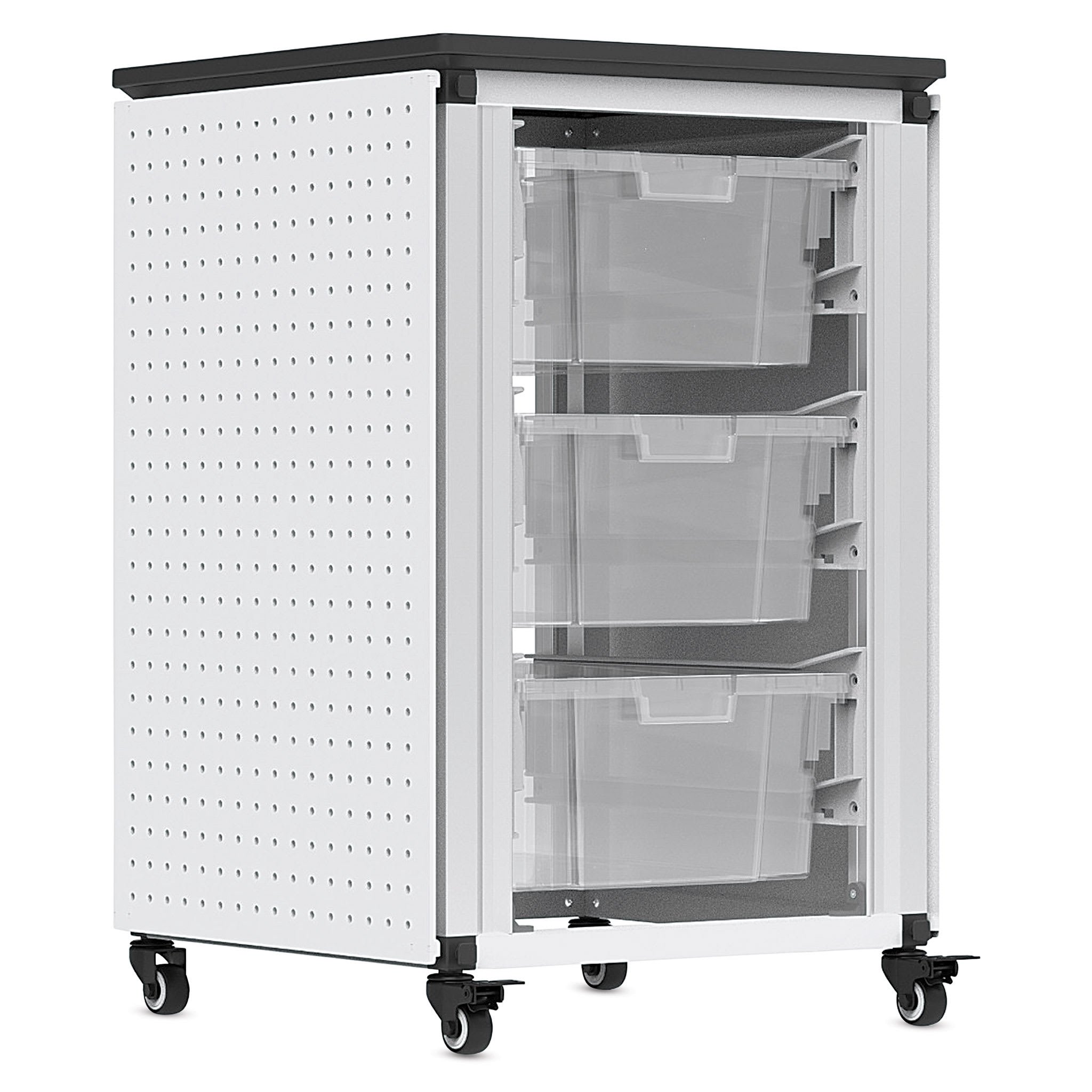 Luxor Modular Classroom Storage Cabinets give you plenty of flexibility in how you organize your school supplies. The overall dimensions of each module measure 28-3/4"H x 18-1/4"W x 18-1/4"D, and you can choose to use them with any combination of 6" deep or 3" deep removable, MBS-series clear plasti...