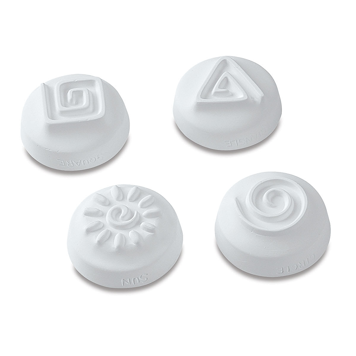 Use these press tools made of plaster to stamp incised designs into rolled-out clay. The smaller designs are also ideal for stamping clay beads that can be used in jewelry making.