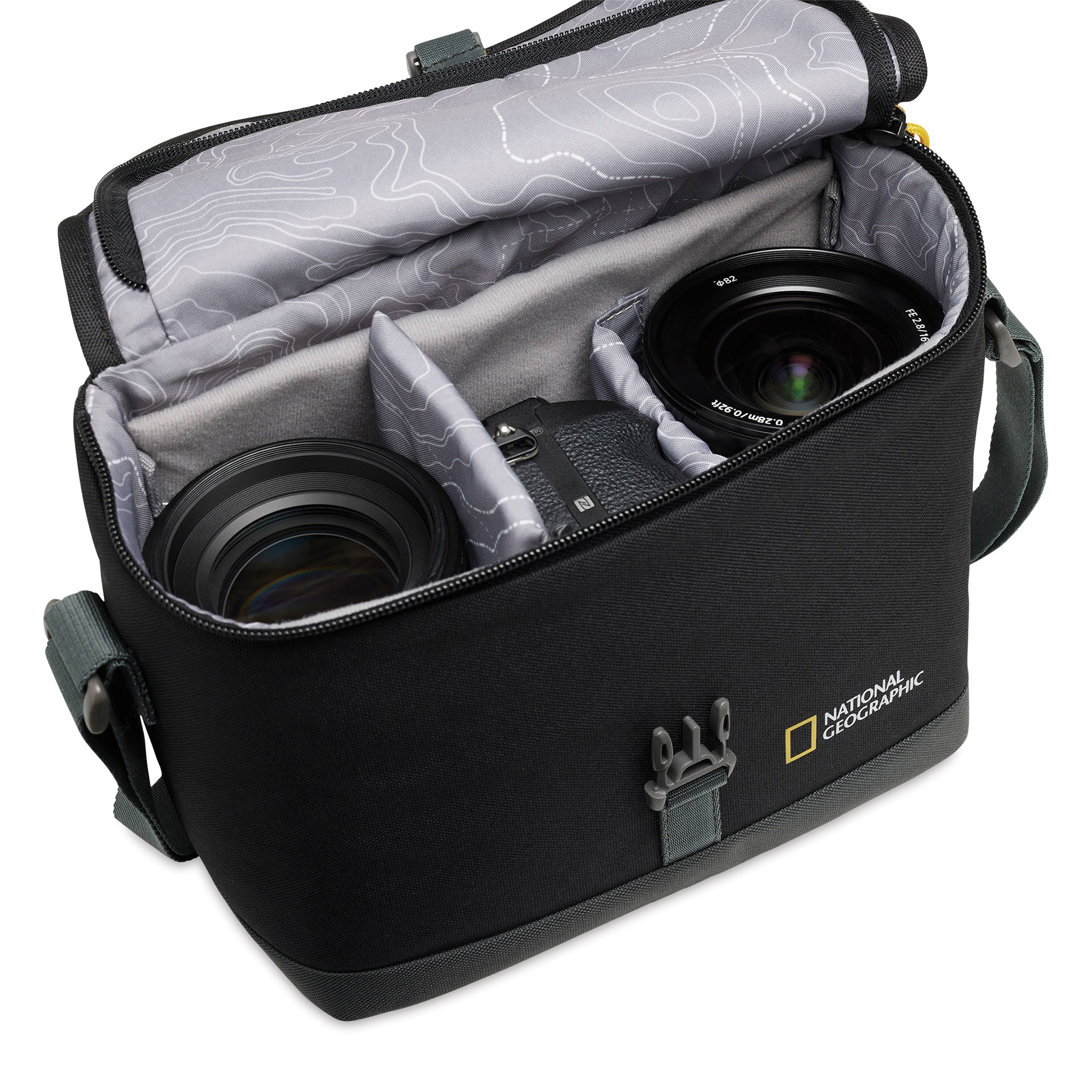 Keep your camera, lenses, and other accessories all in one place when traveling with National Geographic Shoulder Bags. Great for transporting a variety of cameras, these lightweight, compact bags feature adjustable foam dividers so you can customize each bag's interior to fit your needs. The bags a...