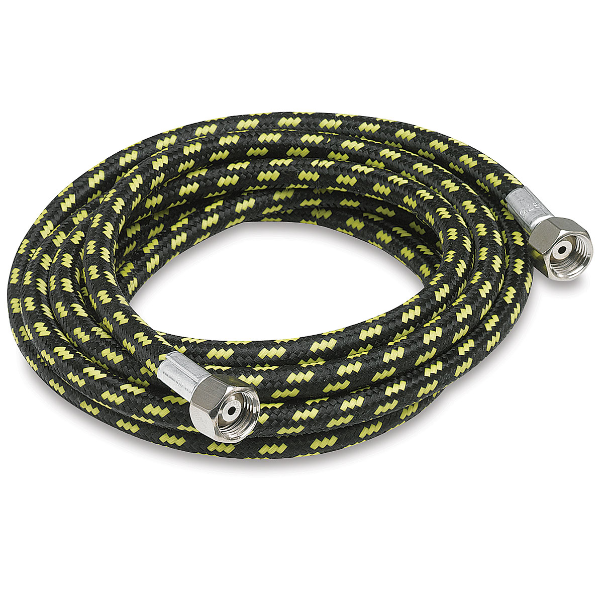 The 10 ft braided hose comes complete with couplings and is recommended for use with Paasche’s larger sprayers (not included). 1/4" NPT fittings on both ends.