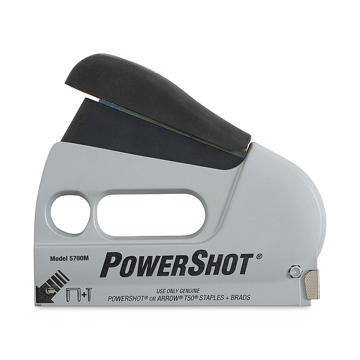 Ideal for general repairs, upholstery, insulation, and light trim, the PowerShot 5700 Staple Gun fires staples and nails, including brads. Its forward action prevents kickback. A wire attachment (furnished) converts the gun to a wire tacker.